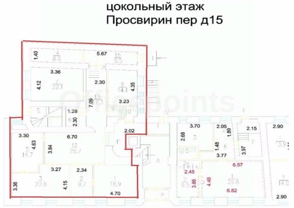 Сдается в аренду офисное помещение на цокольном этаже в жилом доме В класса, который находится по адресу: Просвирин пер., д. 15.