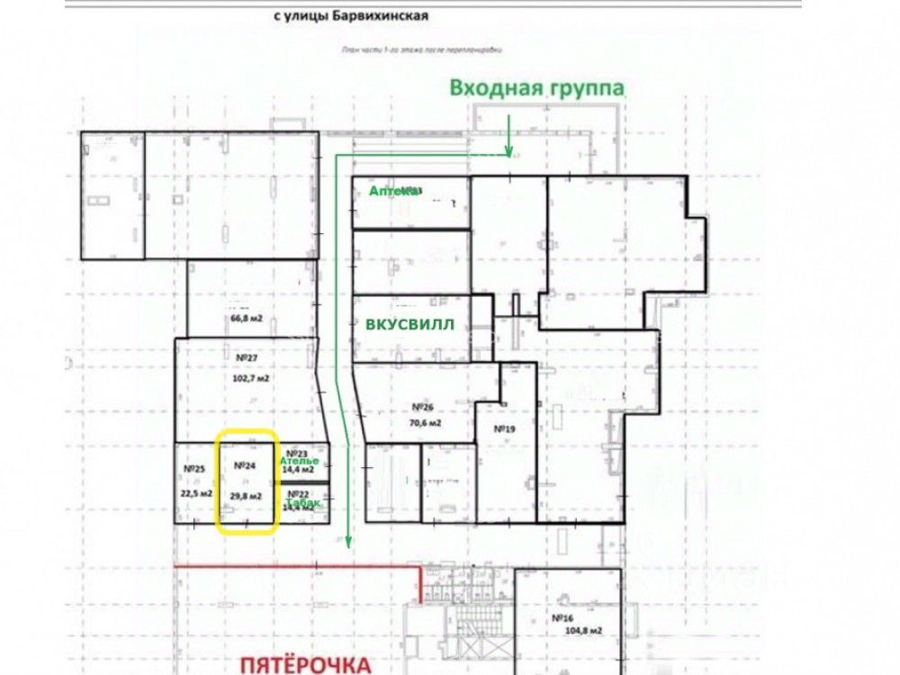 Коммерческие условия: Стоимость: 18 595 200 рублей с НДС Цена за 1 м²: 624 000 рублей с НДС Арендатор: ПВЗ Ozon (МАП = 130 000 руб/мес, краткосрочный договор аренды.) Эксплуатационные и коммунальные расходы оплачивает арендатор.