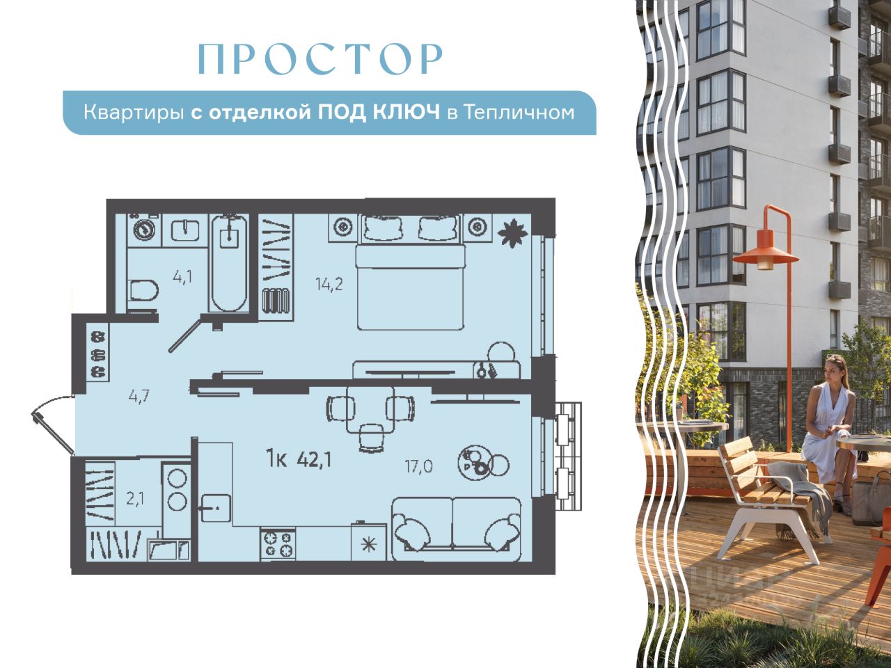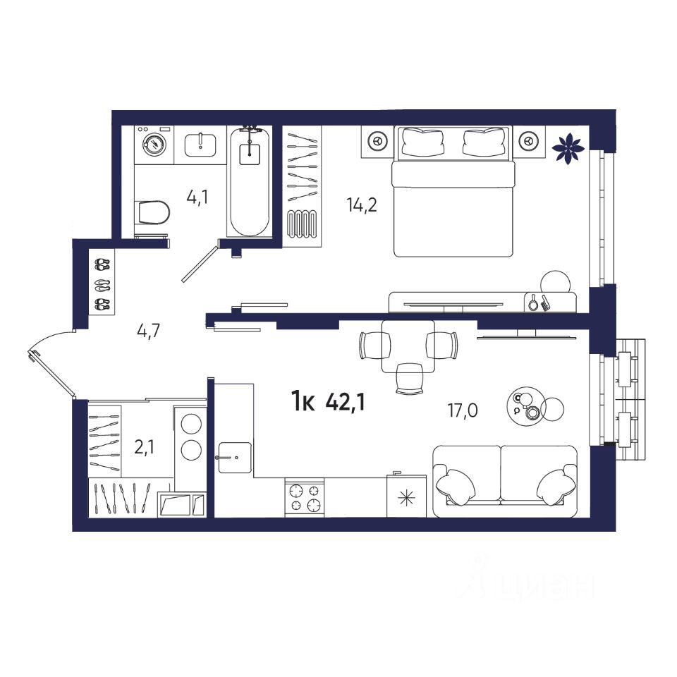 Общая площадь42,1 м2