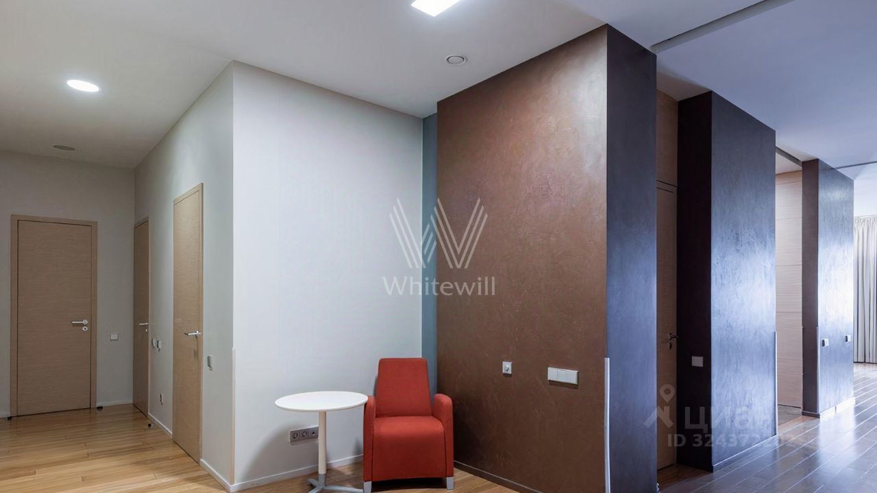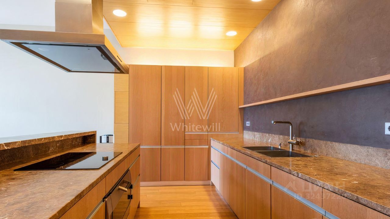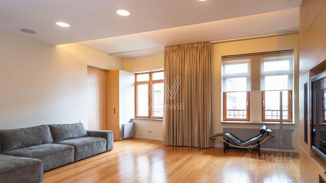 Просторная квартира площадью 286 м² в комплексе ''Бахрушина, 13'' на 9 этаже. Выполнен дизайнерский ремонт с использованием натурального дерева. На полу выложена паркетная доска и крупный керамогранит. Интерьер выдержан в приятных кремово-бежевых тонах, стены украшены картинами.