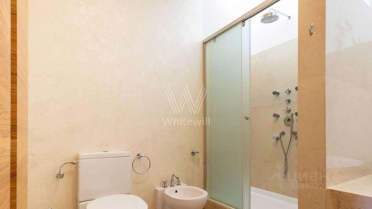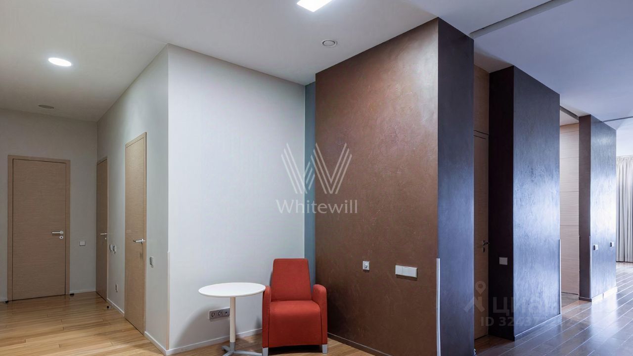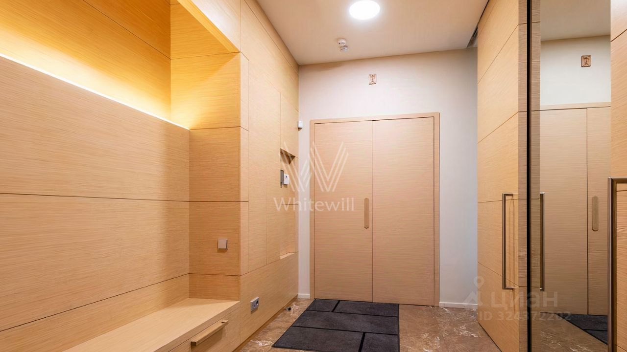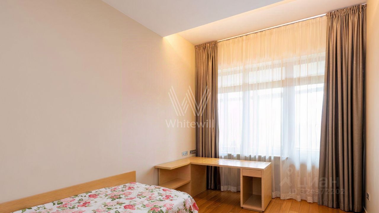 Просторная квартира площадью 286 м² в комплексе ''Бахрушина, 13'' на 9 этаже. Выполнен дизайнерский ремонт с использованием натурального дерева. На полу выложена паркетная доска и крупный керамогранит. Интерьер выдержан в приятных кремово-бежевых тонах, стены украшены картинами.
