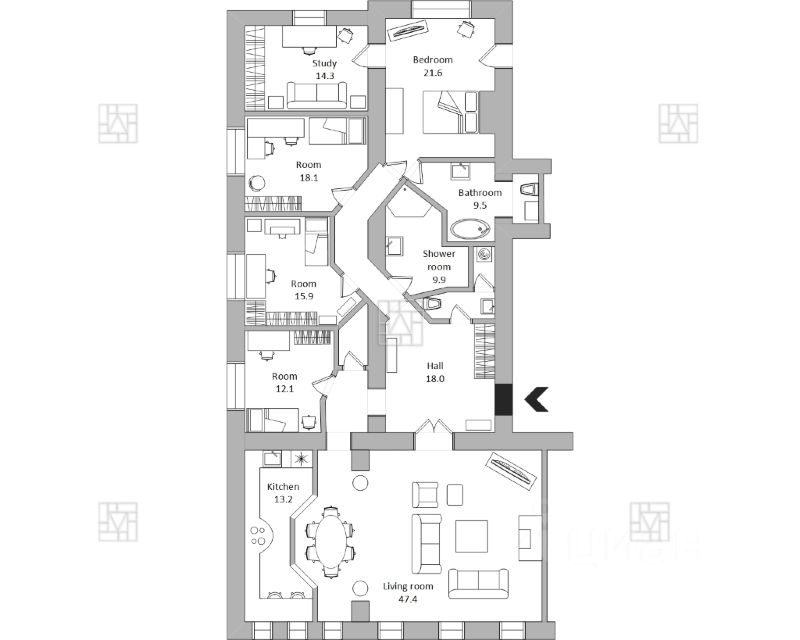 Предлагается большая уютная квартира с ремонтом, выполненным в классическом стиле. Планировкой предусмотрено - большая кухня-гостиная, три детские спальни, основная спальня, кабинет, 2 полноценных санузла и 1 гостевой санузел. Квартира оснащена всей необходимой мебелью, техникой от ведущих мировых производителей. Квартира идеально подходит для семьи с детьми. Развитая инфраструктура района, магазины, прогулочные зоны. Закрепленное машиноместо в закрытом дворе. Окна выходят в тихий двор, что обеспечит качественный сон и отдых. Высокие потолки.