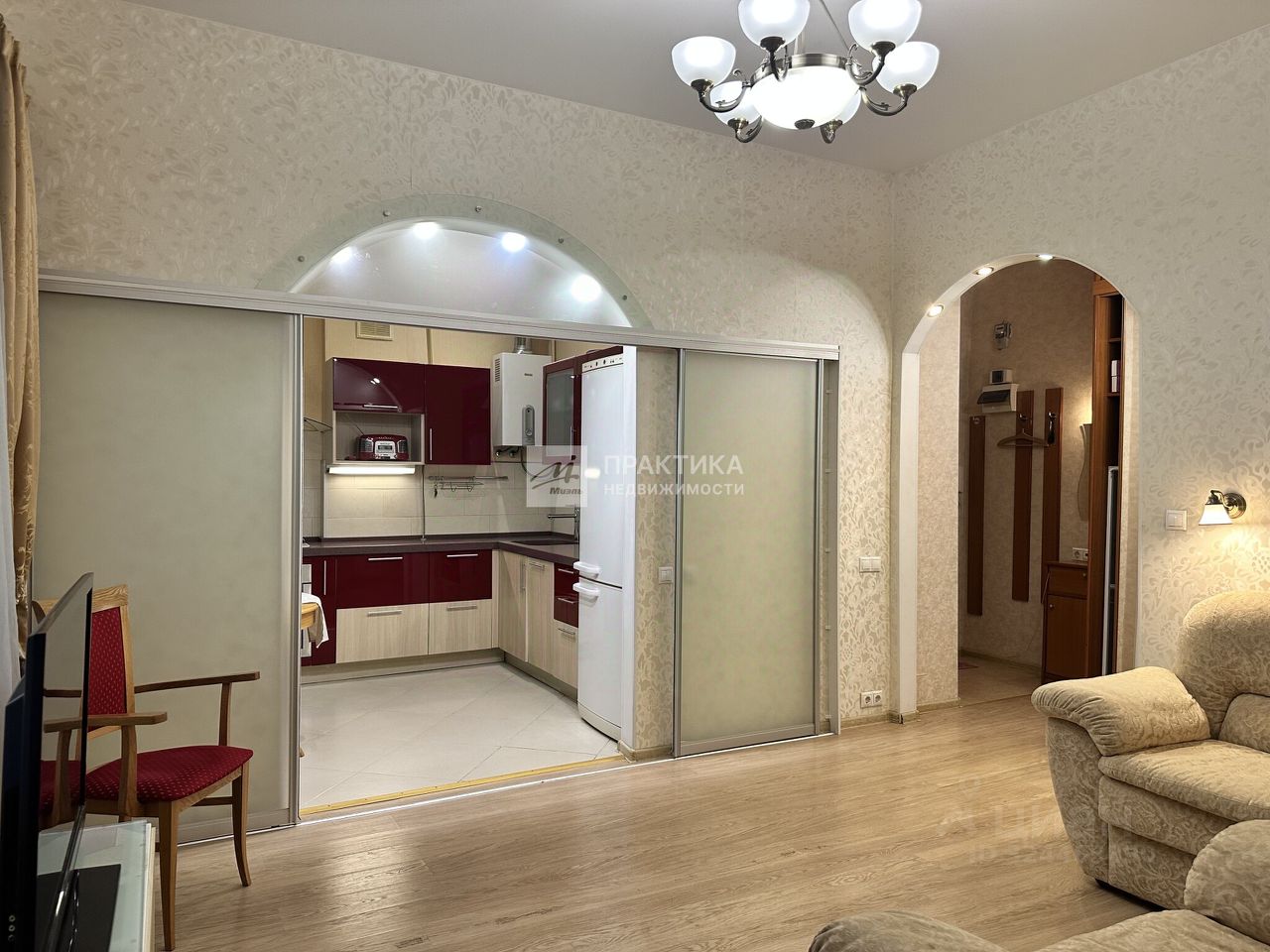 Кирпичный, малоэтажный дом. Уютная, ухоженная квартира, две изолированные спальни, просторная гостиная, кухня, с раздвижными дверями, совмещённый санузел, душевая кабина.