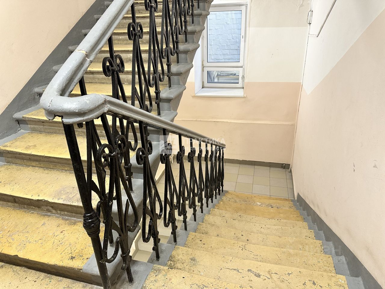 Высокие потолки, 3,4 м., газовая колонка. Тамбур на две квартиры, на этаже три квартиры.