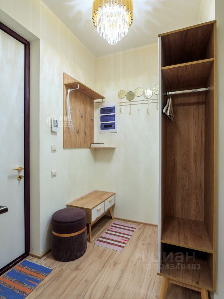 Прихожая отделена от жилых комнат закрывающейся дверью, что очень редко встречается в евро-двушках и создает дополнительную приватность и шумоизоляцию в квартире: -шкаф для одежды -тумба -пуфик