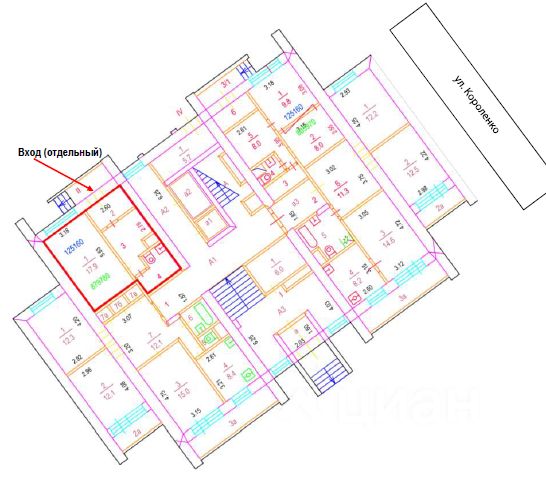 Коммерческое помещение площадью 33.1 м², расположено по адресу: г. Москва, улица Короленко, 2к7, район Сокольники. Объект занимает 1 этаж в здании с этажностью 13 этажей. Помещение с отделкой, свободного назначения, имеет отдельный вход.