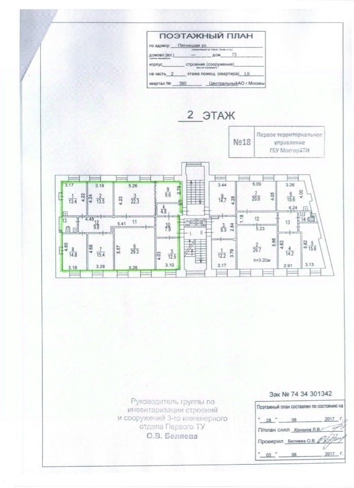 Кабинетная планировка: 8 кабинетов, 2 санузла, кухня.