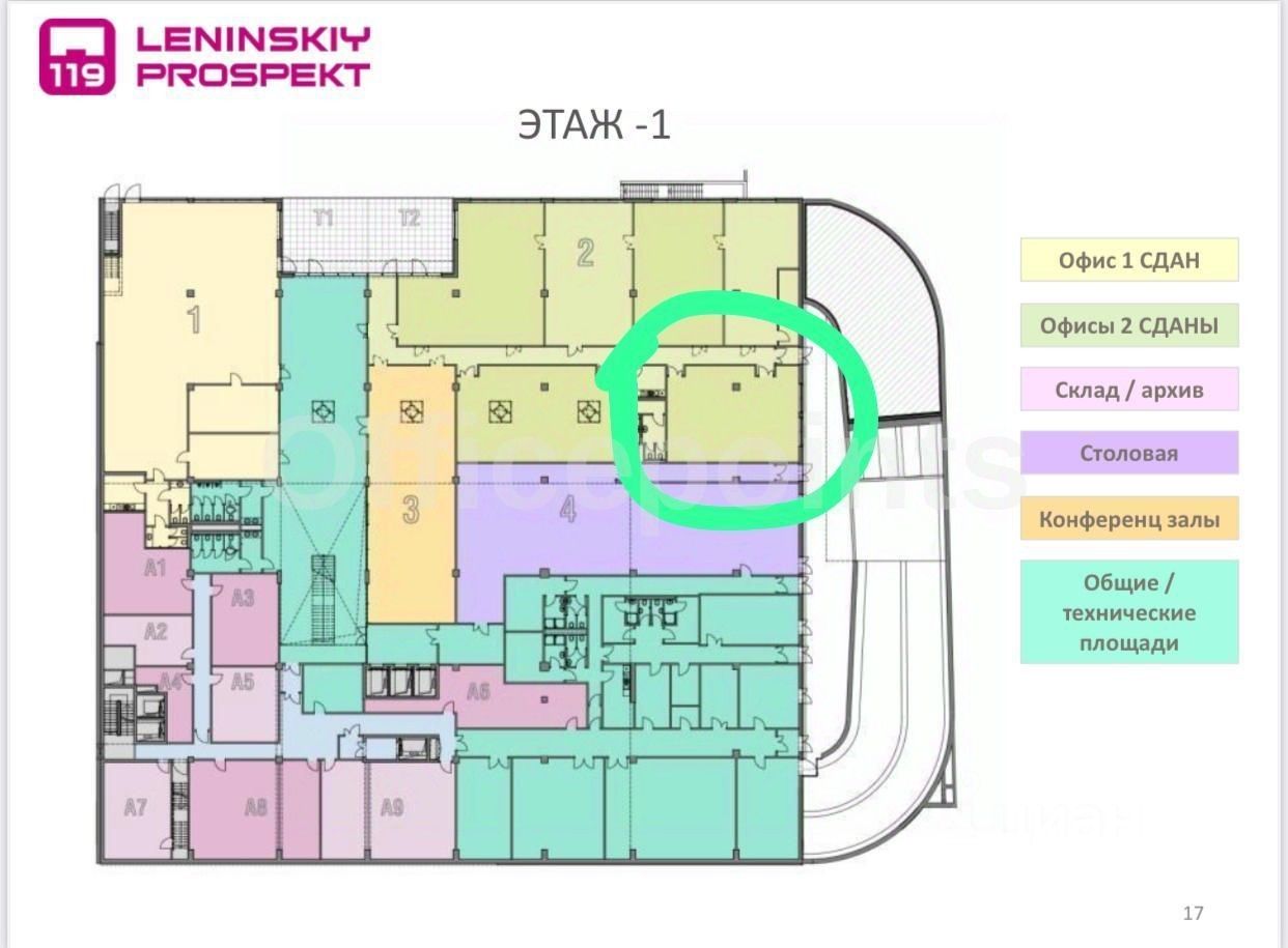 Сдается в аренду офисное помещение на -1 этаже в БЦ Ленинский 119, А класса, который находится по адресу: Ленинский проспект, д. 119А.