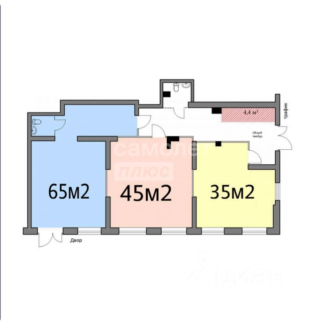 Общая площадь45 м2