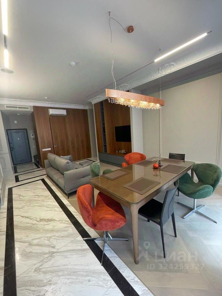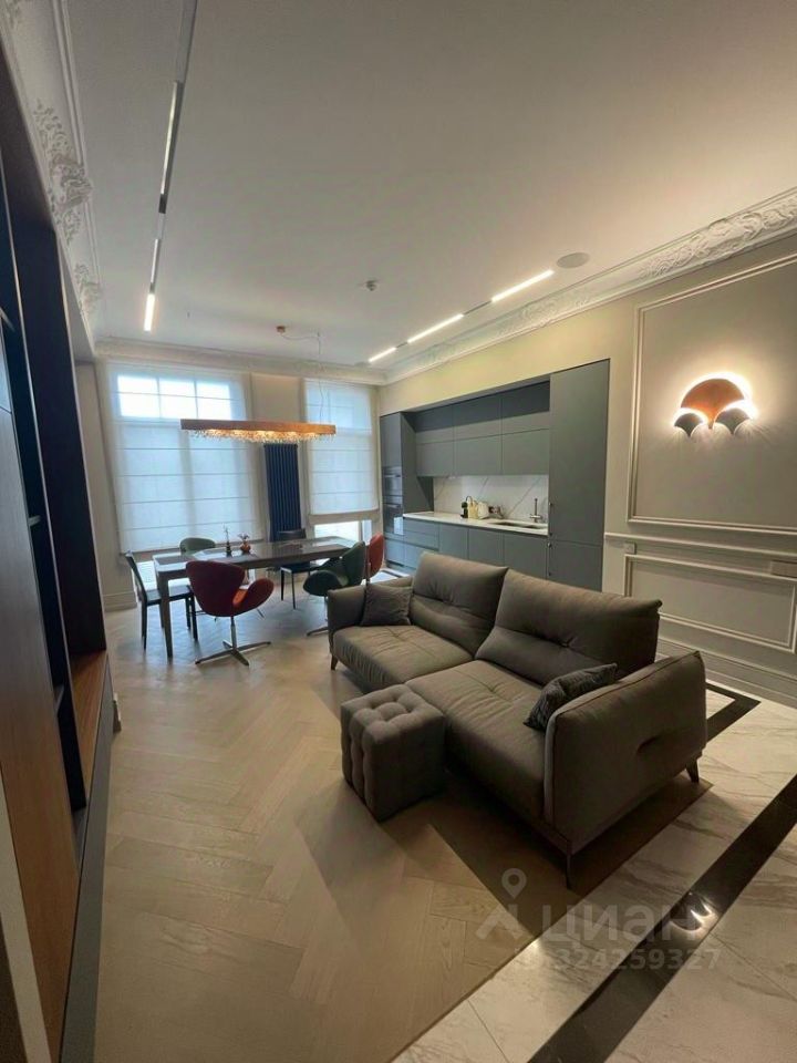 Элитный ЖК ''Резиденция'', расположенный в историческом центре Москвы! Стильные Апартаменты Премиум Класса, после высококачественного ремонта! Просторная студия (кухня-гостиная). Две изолированные комнаты размещены в разных частях квартиры. Одну из комнат можно использовать как рабочий кабинет. Два сан/узла (ванна и душевая). Две гардеробные комнаты. Вся мебель и техника от мировых брендов. Закрытая охраняемая территория (24/7) с внутренним двором. В доме достойная входная группа с ресепшн, и зоной ожидания. На первом этаже дома итальянский ресторан, семейный кинотеатр, Район удобен для деловых встреч и городской жизни. Рядом чистые пруды и театр ''Современник''.