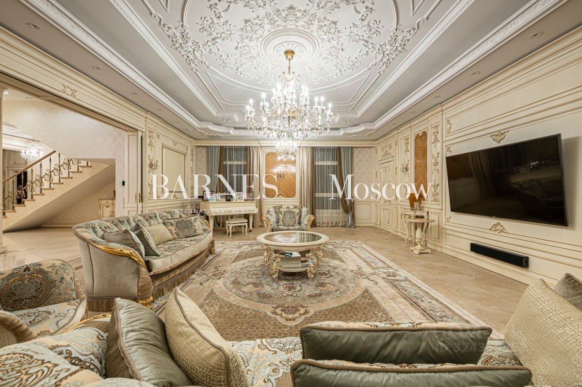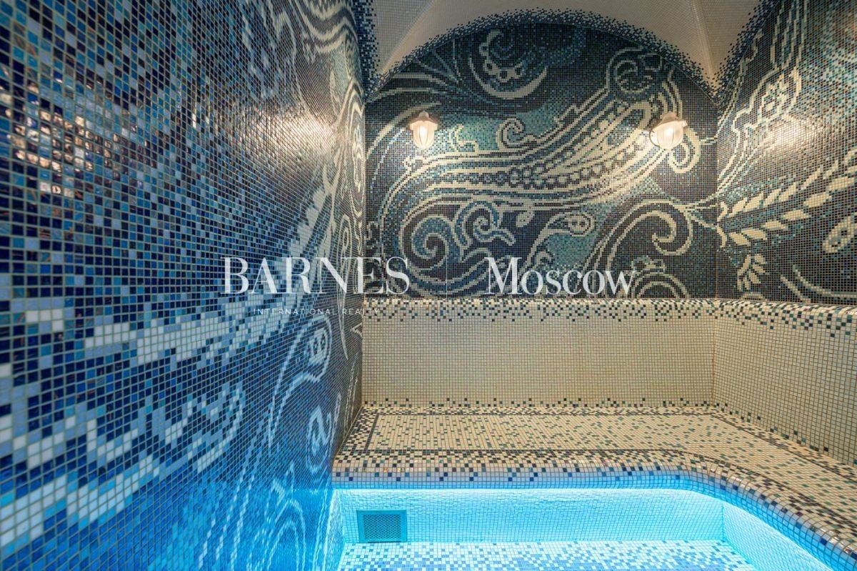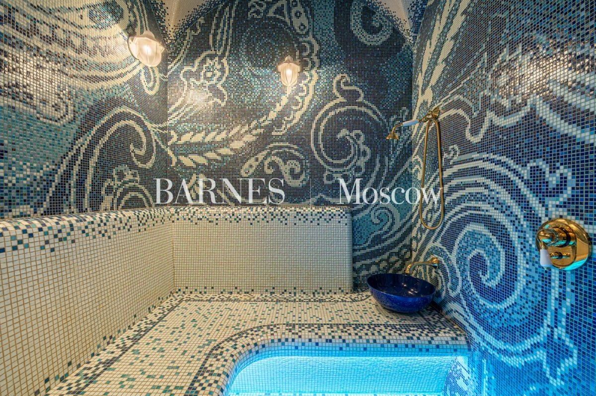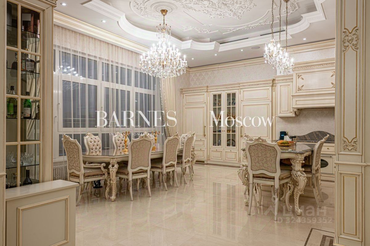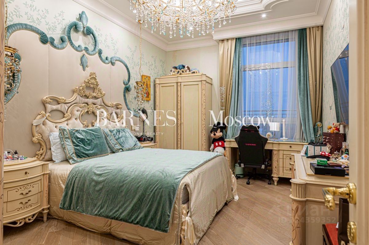 Выполнена авторская отделка в классическом стиле с использованием дорогостоящих материалов (натуральный мрамор, дубовый пол, шелковые обои). Продуманный до мелочей интерьер дополнен мебелью, изготовленной на заказ, и техникой премиальных брендов.