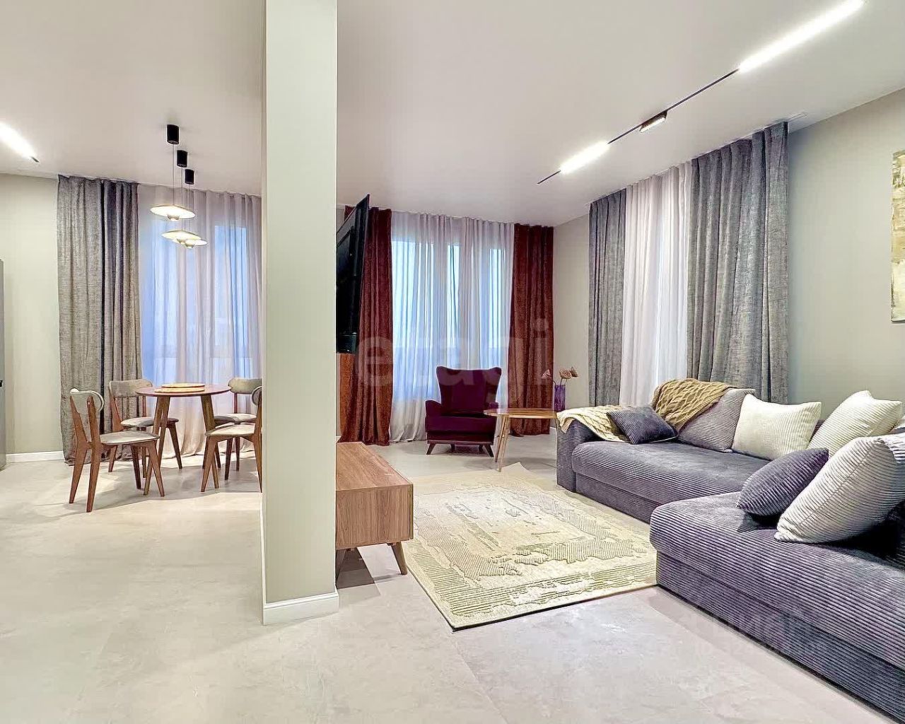 Почти 60 м² с огромной кухней-гостиной, в которой можно устроить званый ужин, не мешая тем, кто уже отдыхает в спальне. Два санузла — чтобы у каждого было личное пространство. Ничего лишнего, всё на своих местах, ремонт выполнен с уважением к деталям и ощущению дома.