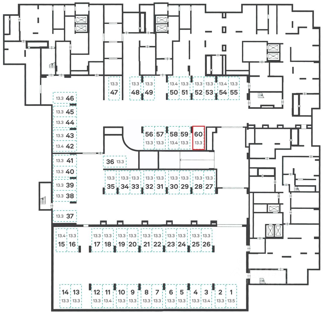 Общая площадь13,3 м2