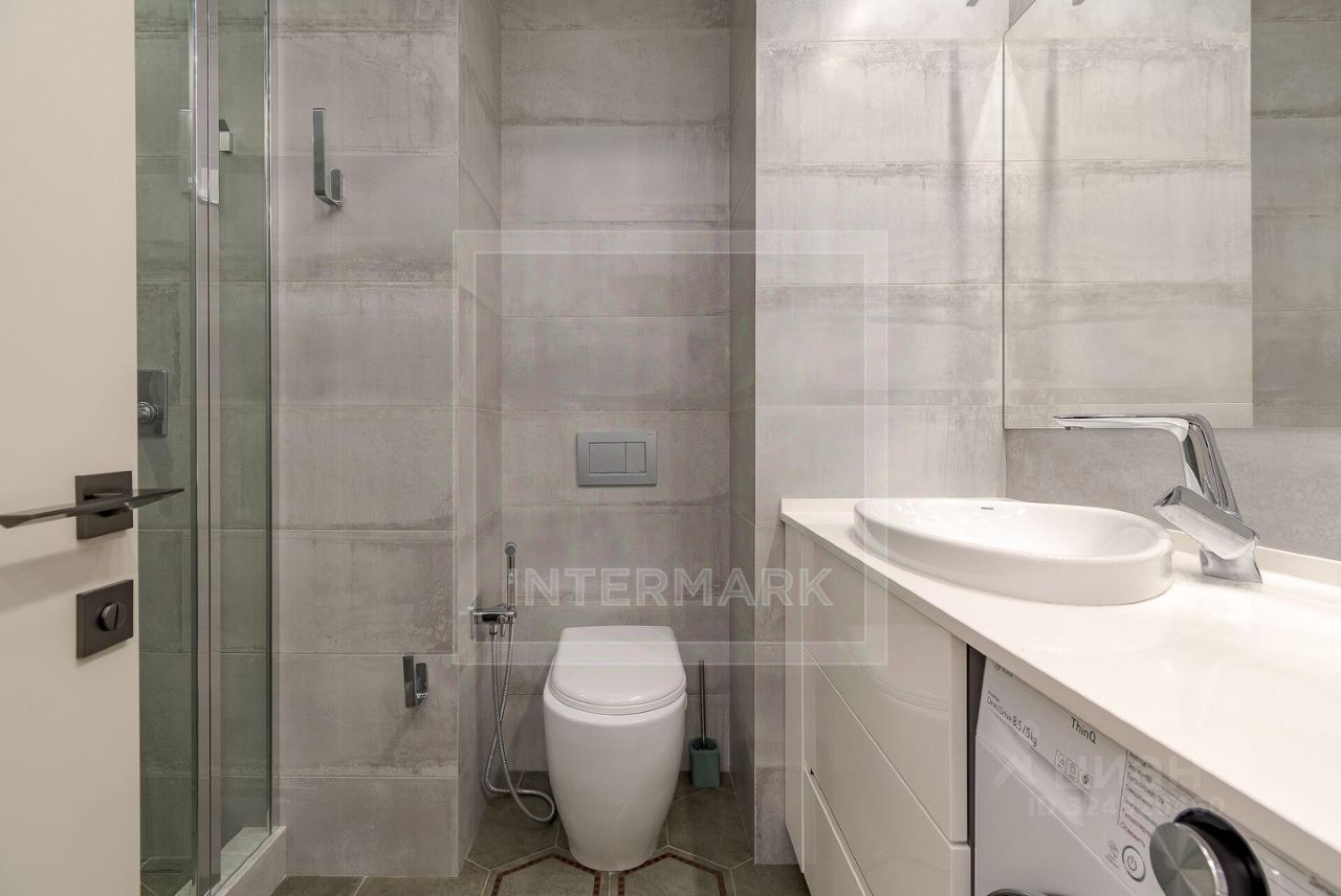 В квартире: Парковка, Посудомоечная машина, Стиральная машина, Сушильная машина, Бойлер, Душевая кабина, Теплые полы, Спутниковое/кабельное телевидение, Кондиционер, Интернет, Видовая квартира, Можно с детьми, Европланировка, Ванна, Консьерж, Ремонт - дизайнерский, Окна на улицу, Окна во двор