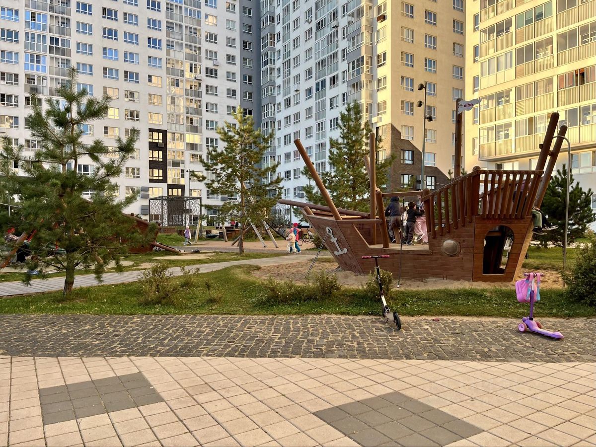 Школа и детский сад прямо при выходе со двора.