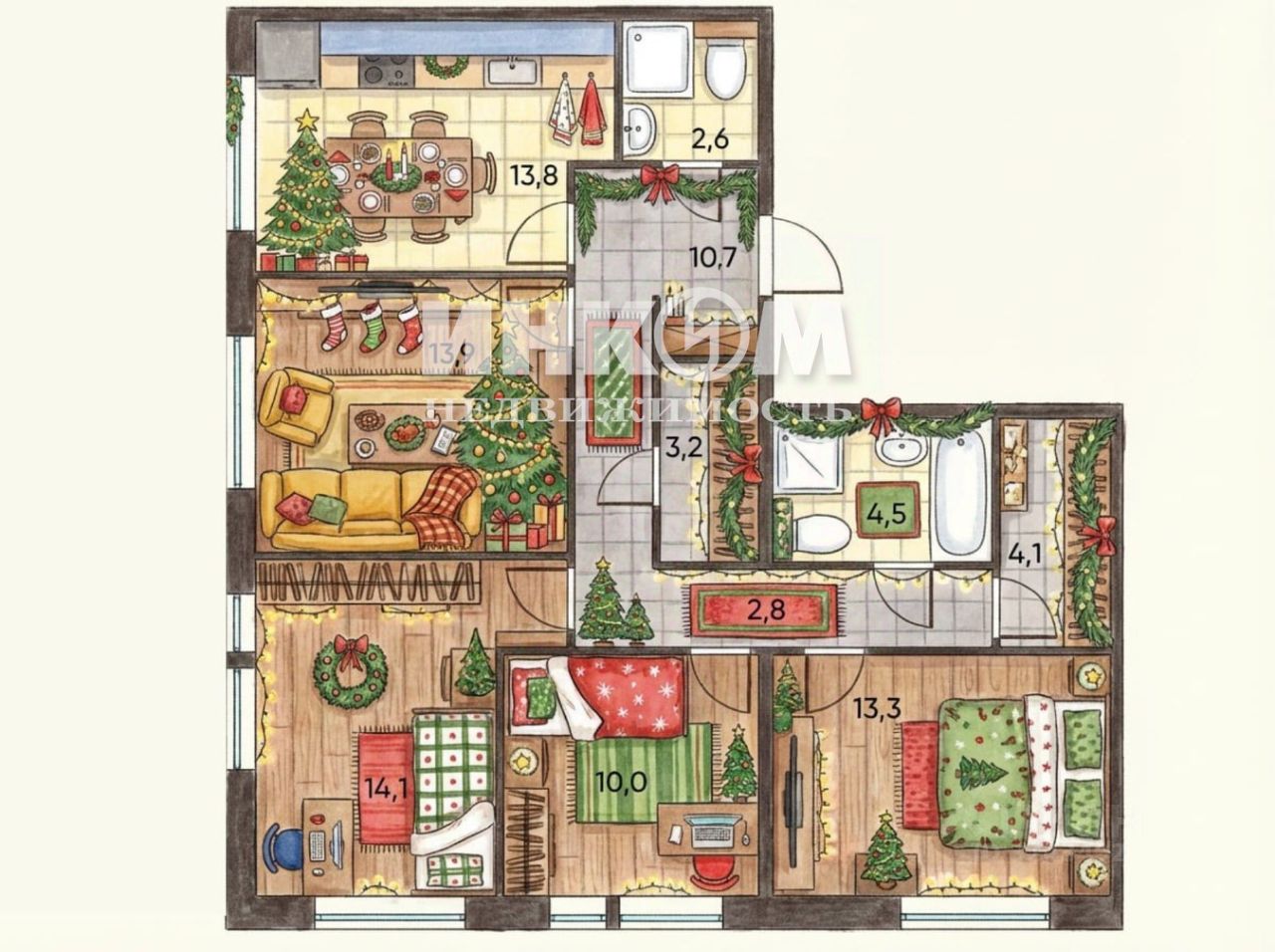 Квартира: 4-х к квартира 92 м для Семьи с детьми в малоэтажной секции ЖК ''Мякинино Парк''. Умная планировка для комфортной жизни семьи: Мастер-спальня с гардеробной и с/узлом для родителей, 2 спальни для детей(14м и 10м), гостиная 14 м, кухня-столовая 13.8м, гардеробная и с/узел. Планировка позволяет сделать просторную кухню-гостиную-тогда Вы получаете 30+ м2 общего семейного пространства или есть возможность сделать спальню или кабинет для работы.