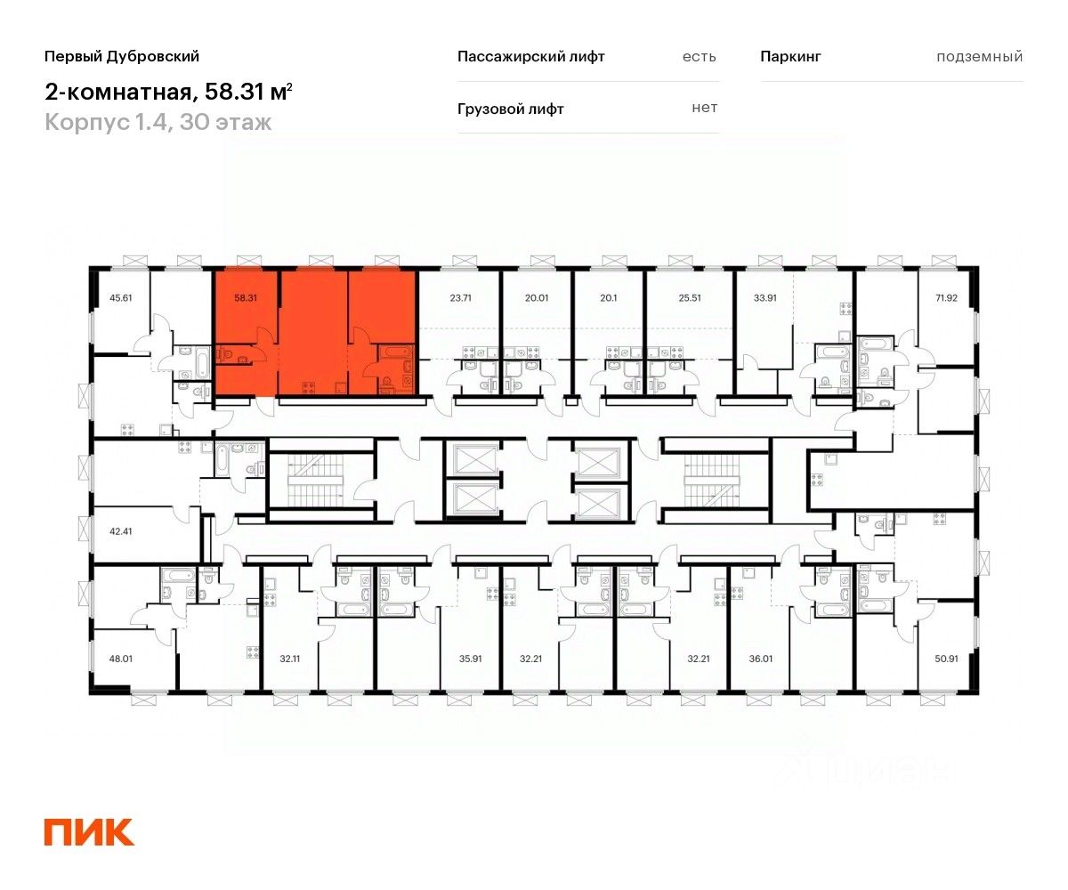 Продаётся 2-комн. квартира площадью 58,31 кв.м на 30 этаже 38 этажного дома (Корпус 1.4, Секция 2) проекта ПИК Первый Дубровский. Светлый просторный подъезд на уровне земли, функциональная планировка, большие окна, c отделкой.