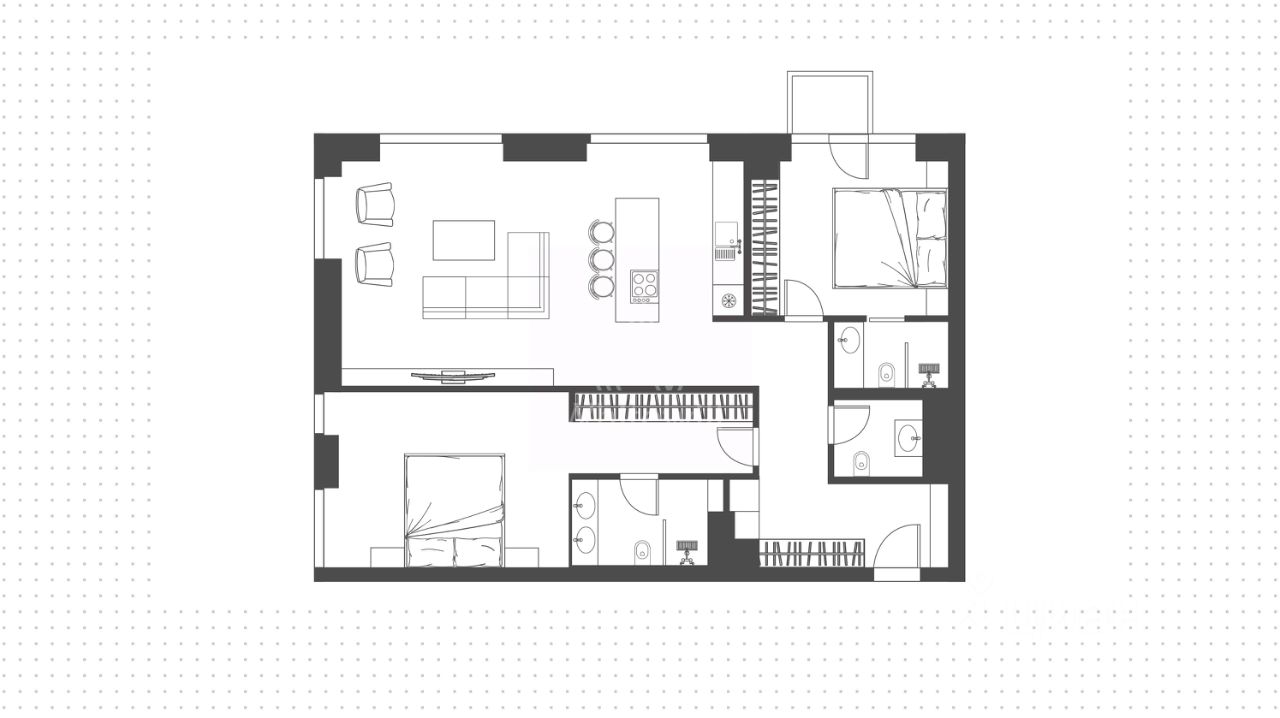 Квартира с двумя спальнями общей площадью 102 м² на 8-м этаже в комплексе премиум-класса Victory Park Residences в 8-м корпусе.