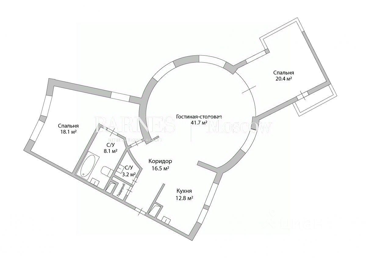 ID: 559043 Видовая 3-комнатная квартира площадью 120.8 кв.м. в жилом комплексе ''Петровский Замок''.