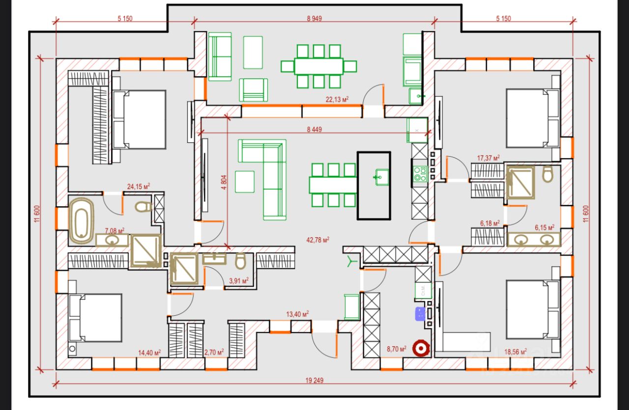 Общая площадь176 м2