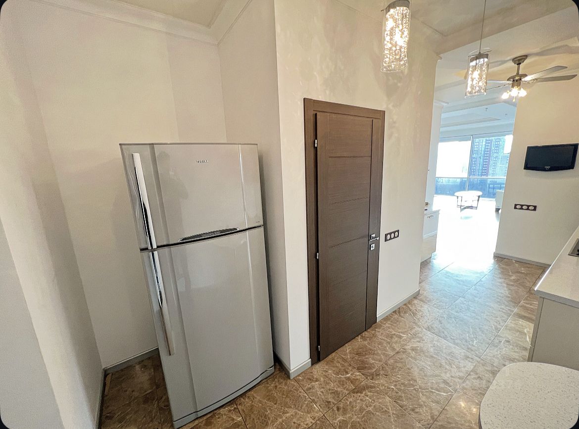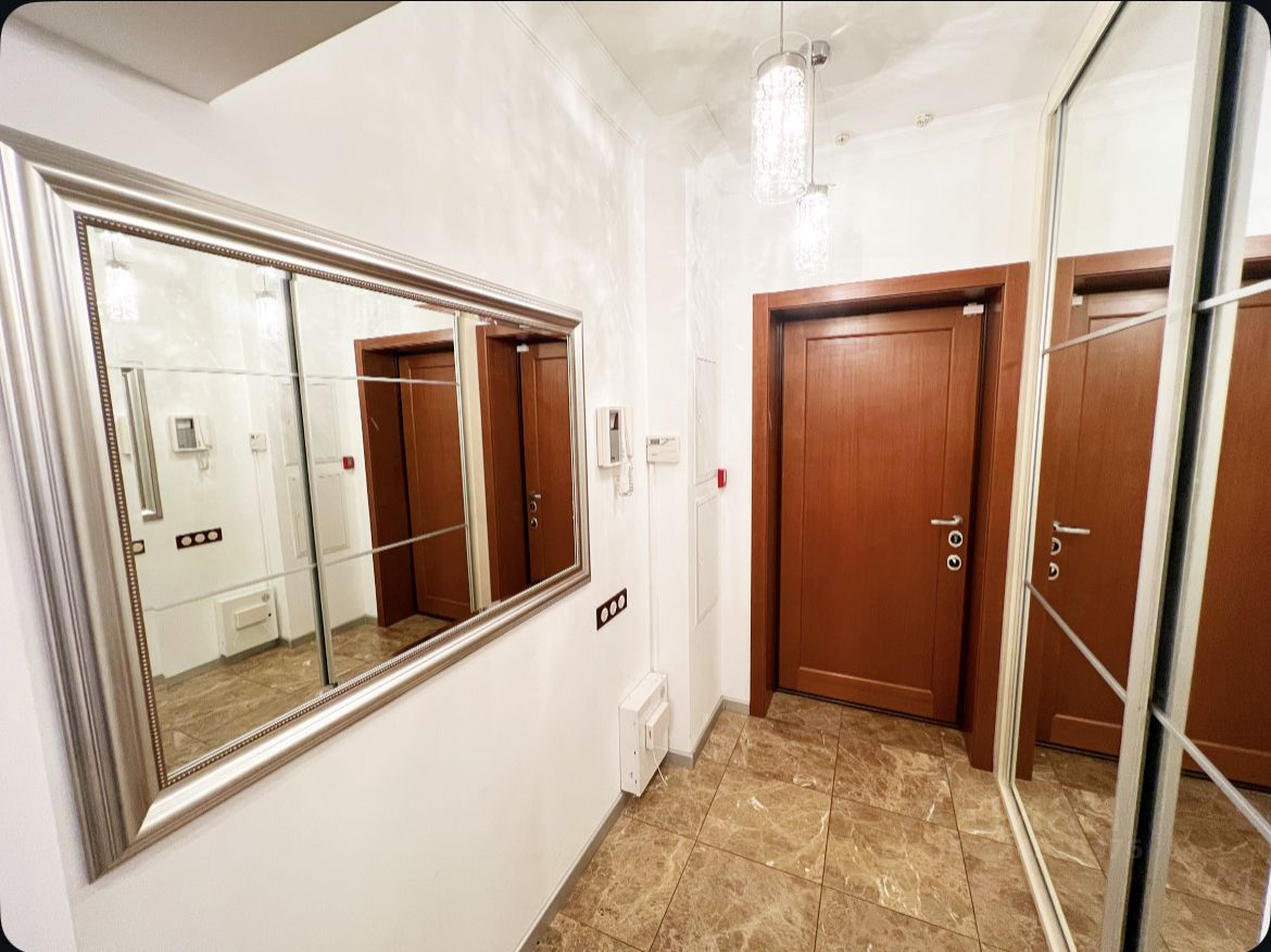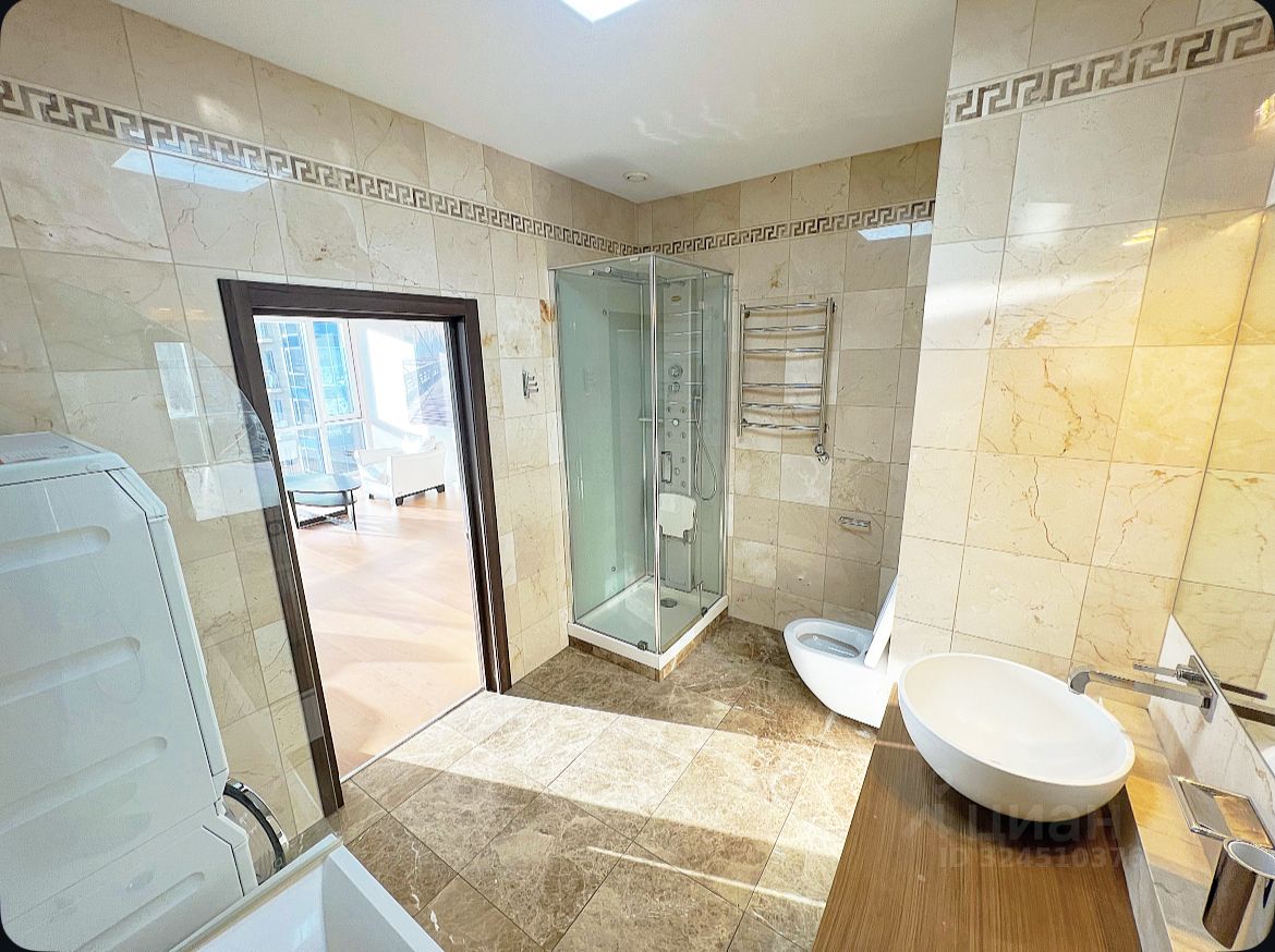 О квартире: Площадь 90м2, Два раздельных санузла, Душевая и ванна, Панорамные окна в пол, Кондиционеры в каждой комнате, Премиальная техника Miele (плита, духовой шкаф, духовка, стиральная и сушильная машины), Сантехника Villeroy & Boch,