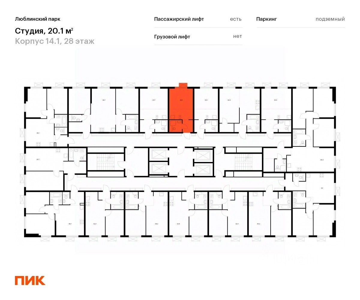 Продаётся квартира-студия площадью 19,6 кв.м на 28 этаже 33 этажного дома (Корпус 14.1, Секция 1) проекта ПИК Люблинский парк. Светлый просторный подъезд на уровне земли, функциональная планировка, большие окна, c отделкой.