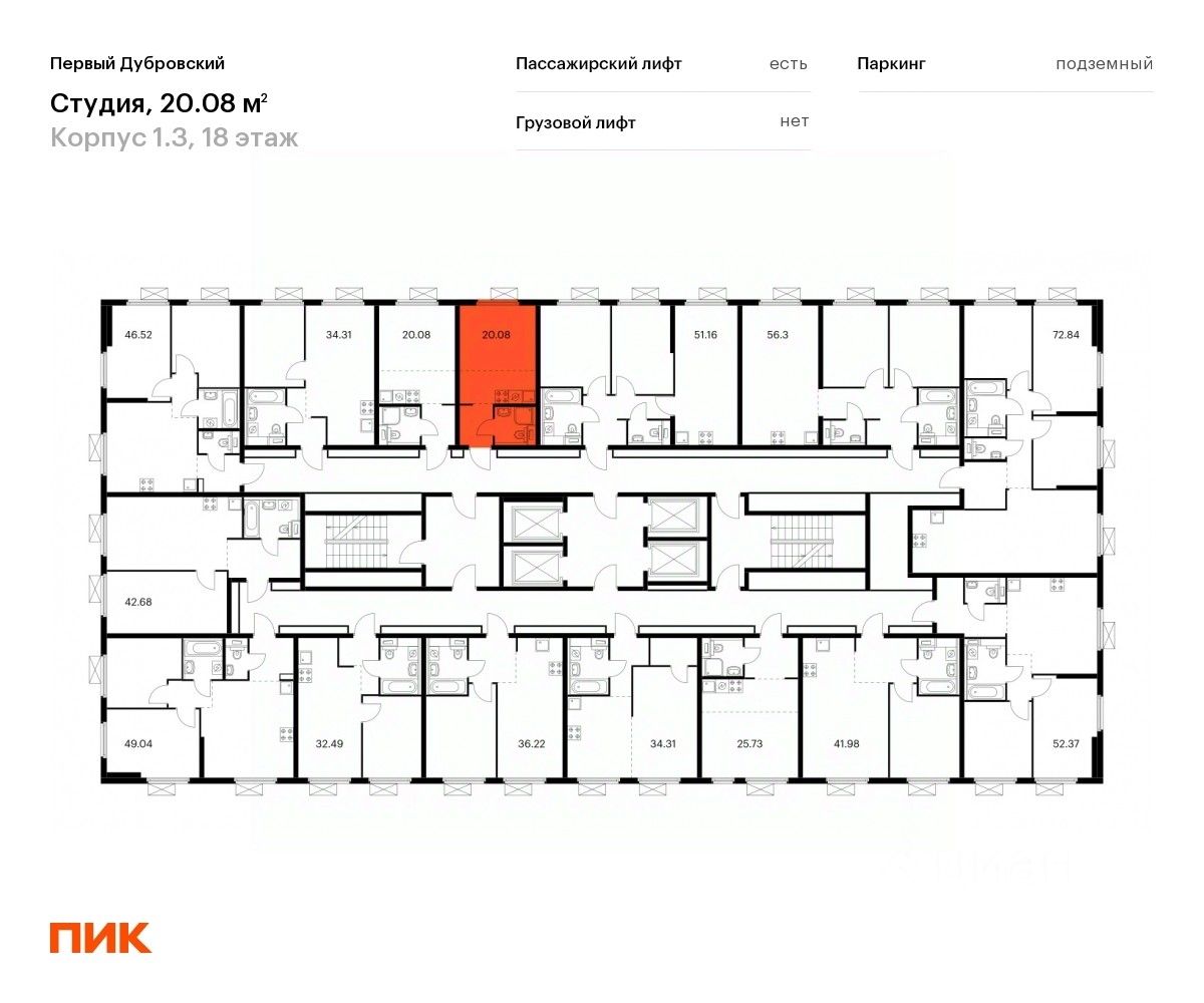 Продаётся квартира-студия площадью 20,08 кв.м на 18 этаже 33 этажного дома (Корпус 1.3, Секция 1) проекта ПИК Первый Дубровский. Светлый просторный подъезд на уровне земли, функциональная планировка, большие окна, c отделкой.