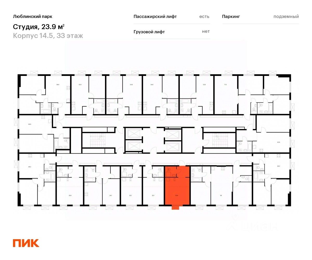 Продаётся квартира-студия площадью 23,3 кв.м на 33 этаже 33 этажного дома (Корпус 14.5, Секция 3) проекта ПИК Люблинский парк. Светлый просторный подъезд на уровне земли, функциональная планировка, большие окна, c отделкой.