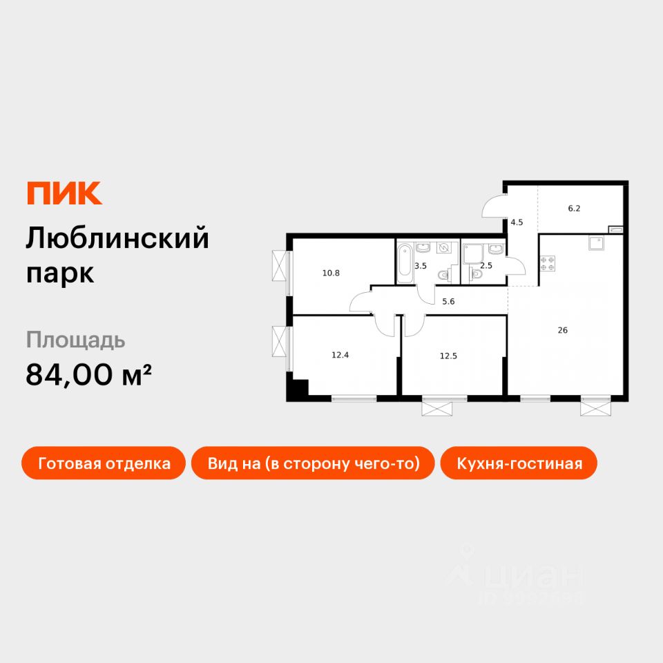 Продаётся 3-комн. квартира площадью 84 кв.м на 2 этаже 17 этажного дома (Корпус 14.2, Секция 2) проекта ПИК Люблинский парк. Светлый просторный подъезд на уровне земли, функциональная планировка, большие окна, c отделкой.