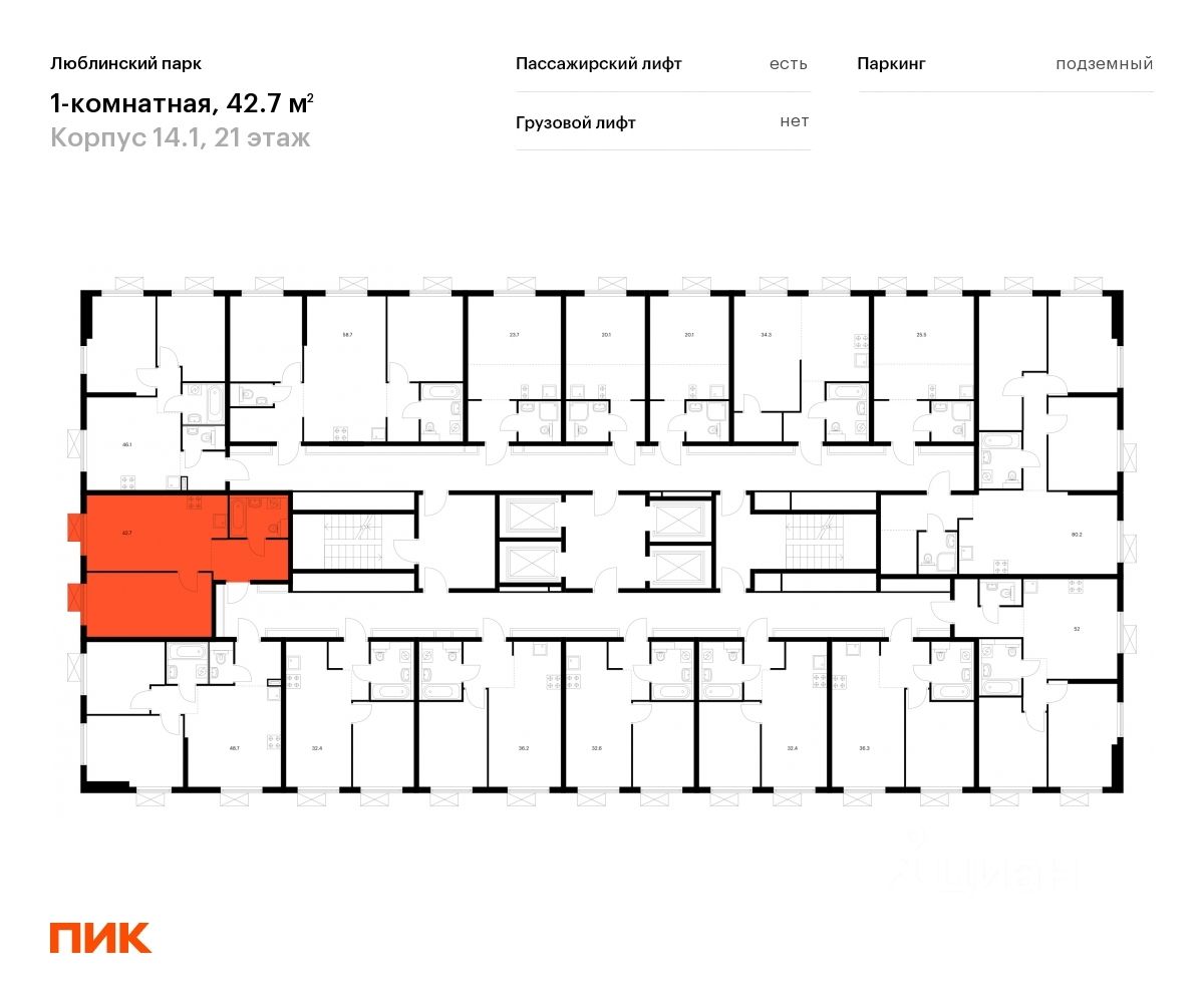 Продаётся 1-комн. квартира площадью 41,6 кв.м на 21 этаже 33 этажного дома (Корпус 14.1, Секция 1) проекта ПИК Люблинский парк. Светлый просторный подъезд на уровне земли, функциональная планировка, большие окна, c отделкой.