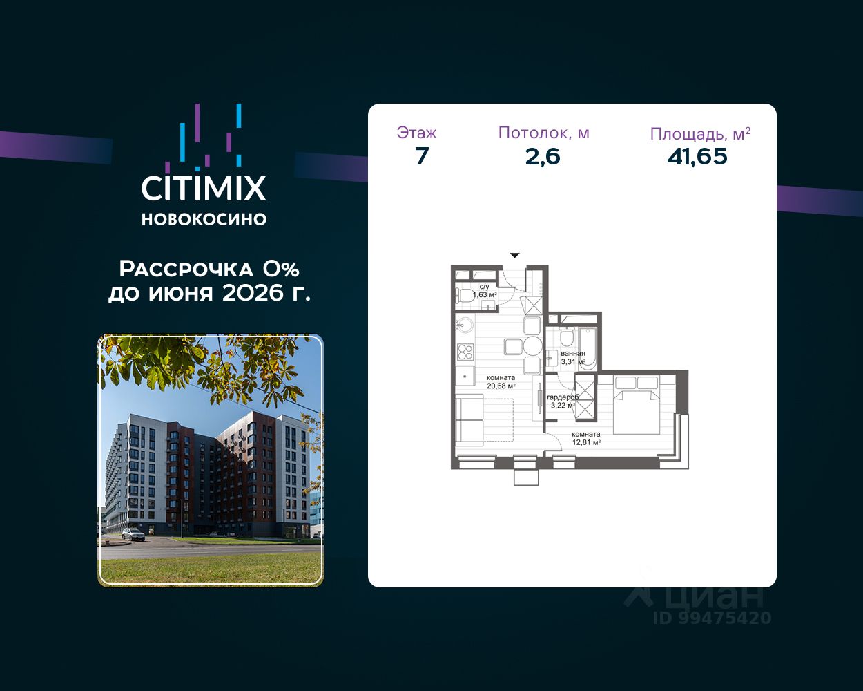 Общая площадь41,65 м2