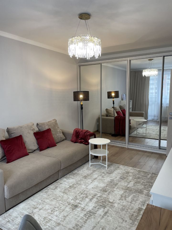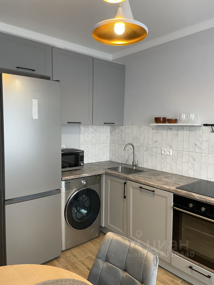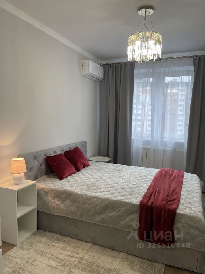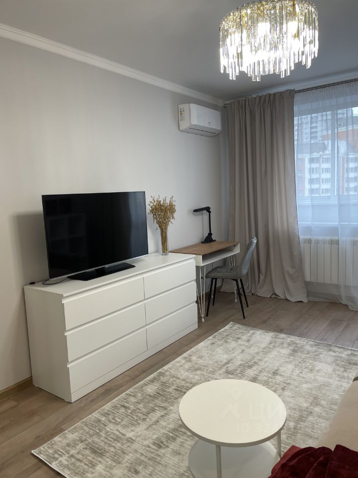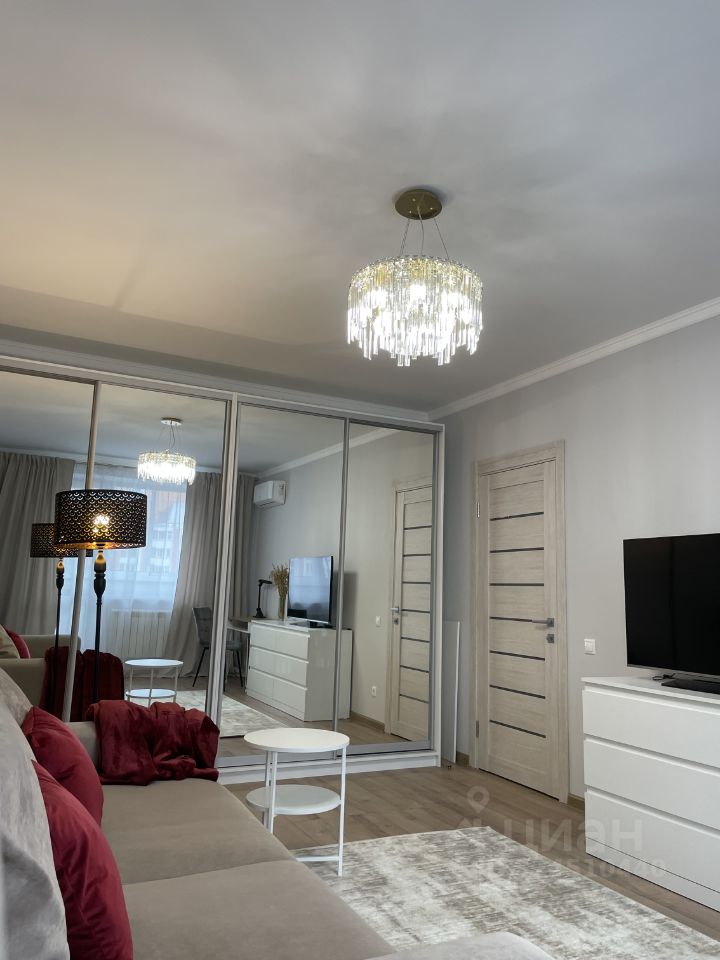 В квартире сделан современный евроремонт. В наличии вся необходимая мебель: комфортная обстановка в комнатах и полностью оборудованная кухня. Из техники в вашем распоряжении кондиционеры в каждой комнате, посудомоечная машина, телевизор и стиральная машина. Санузел совмещённый, есть ванна. Окна выходят во двор, что обеспечивает тишину и спокойствие. Также имеется просторная лоджия.