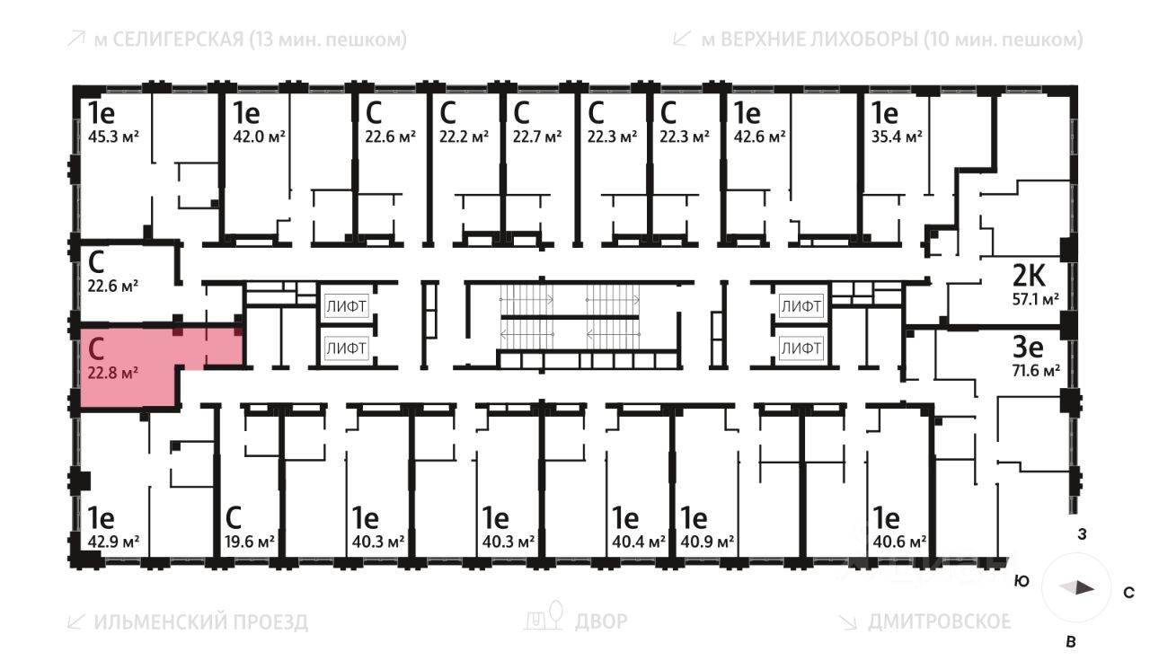 Продается квартира-студия общей площадью 22.8 кв. метров на 7 этаже жилого комплекса Дмитровское небо. Комплекс возводится в Северном административном округе в районе Западное Дегунино в Ильменском проезде, в 5 минутах ходьбы от метро ''Верхние Лихоборы'', а автомобилисты могут за пару минут выехать на Ильменский проезд и по нему добраться до Дмитровского шоссе.