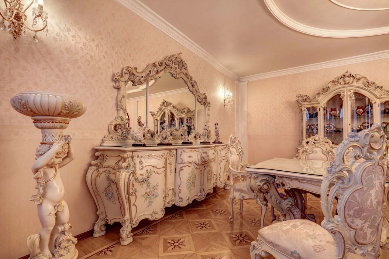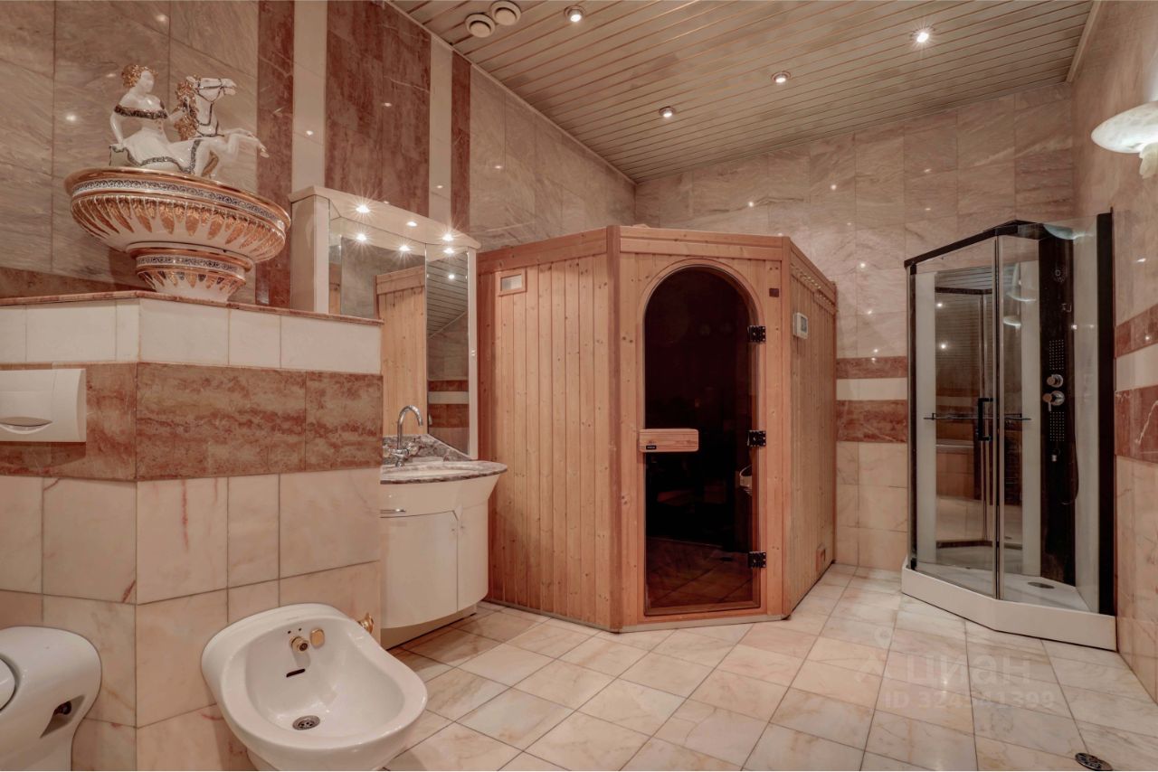 В квартире выполнен дорогостоящий ремонт из лучших импортных материалов. На полу художественный паркет ручной работы изготовлен из 3-х сортов дерева - дуб, сосна, вишня, люстры Сваровски, кухня и гостевой туалет из мрамора и оникса, лестница - мрамор, действующий камин из Итальянского мрамора, 3 уровня освещения, сантехника Италия ( Альбатрос), окна с шумоизоляцией, мансардные окна с бронированными стеклами, с системой очисткой воды, оборудованы внешними решетками, система открывания окон с секретом, открыть их снаружи невозможно, установлена система видео-наблюдения. Лестница ручной работы из итальянского мрамора - отдельное произведение искусства. Установлена сплит-система с 3-я кондиционерами. Большая ванная комната 17 кв.м отделана мрамором и ониксом, джакузи, финская сауна.
