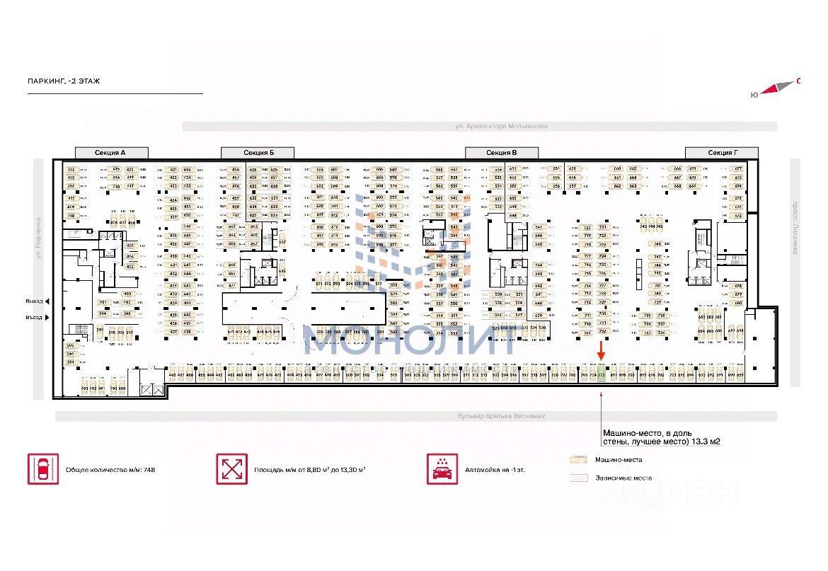 Продается машино - место вдоль стены , на -2 этаже в ЖК ''ЗИЛАРТ'' Башня В