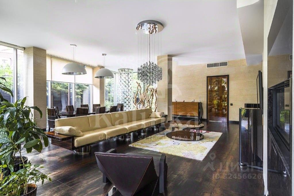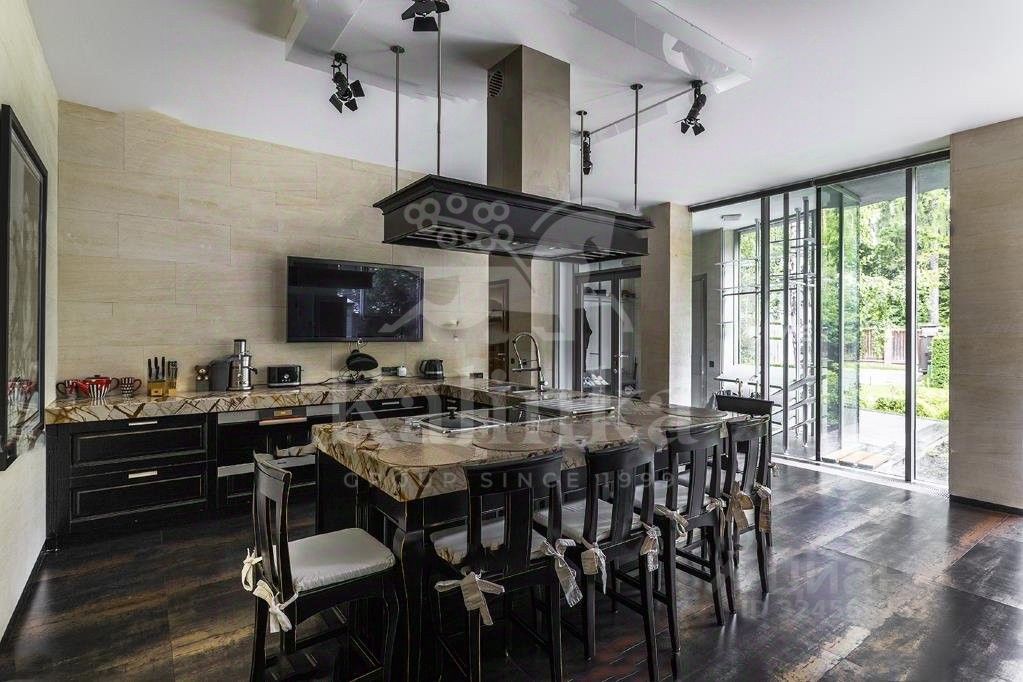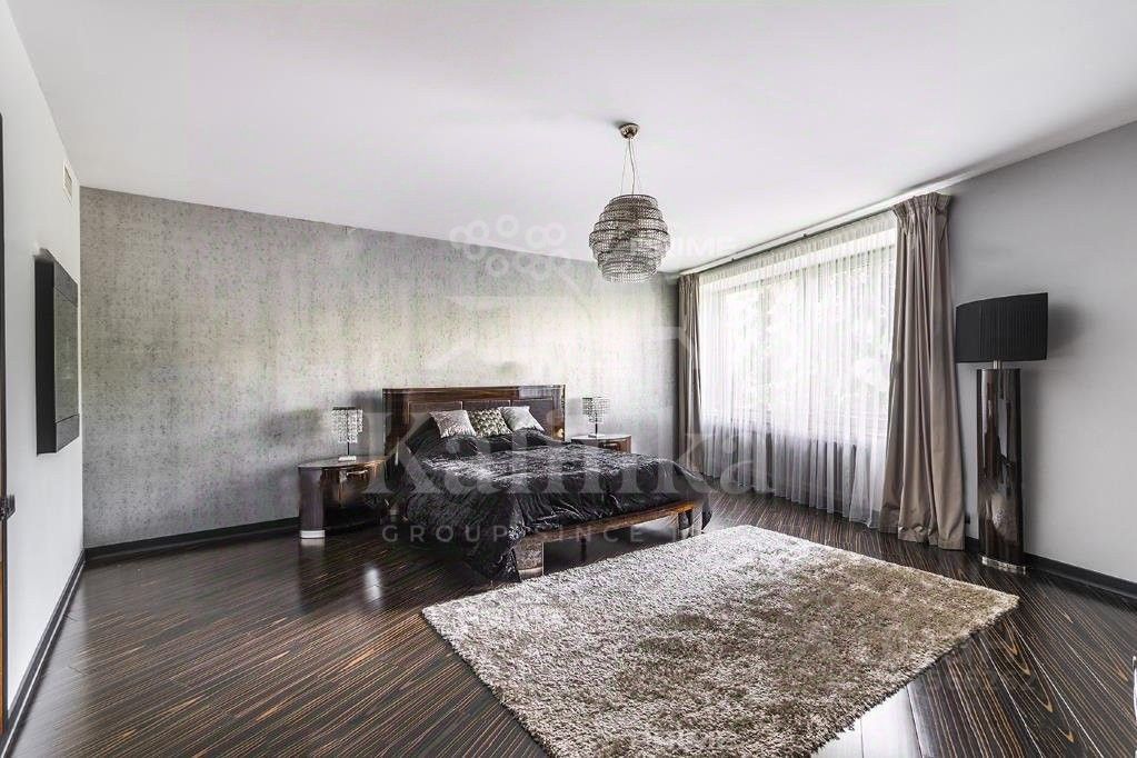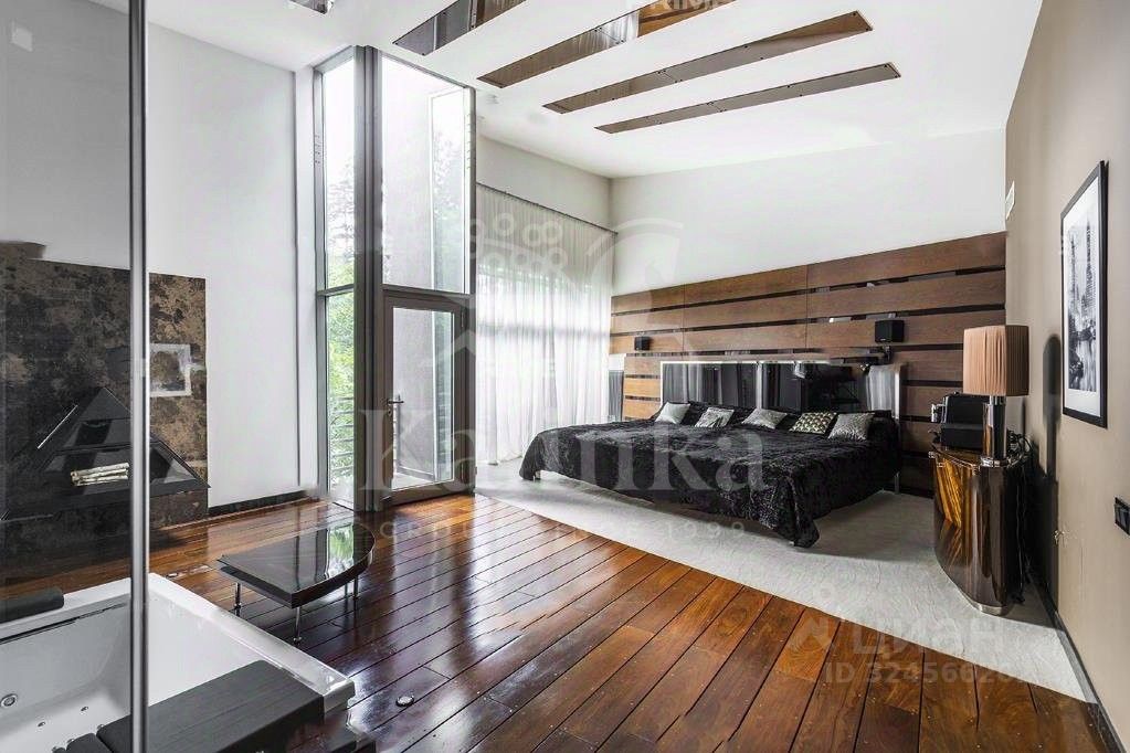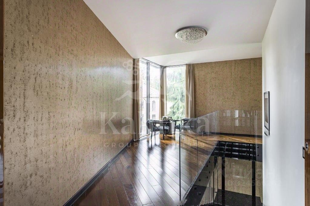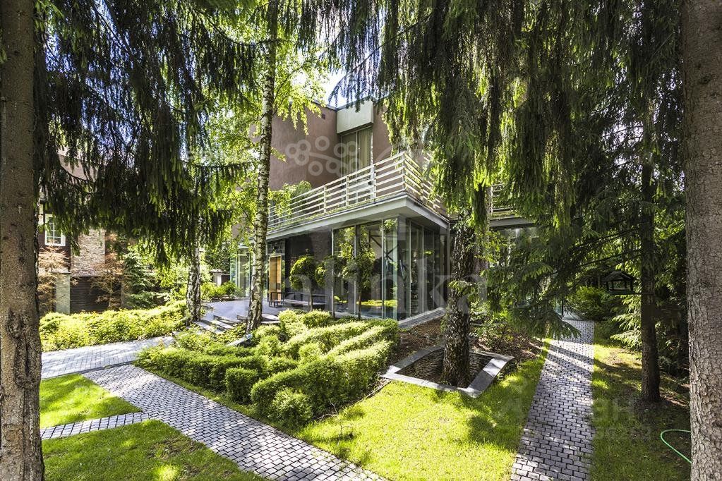 Светлый современный дом в стиле hi-tech. Большая площадь остекления, лифт, эксплуатируемая кровля. В доме: 5 спален с ванными комнатами и гардеробными, 2 комнаты свободного назначения, большая гостиная с камином, домашним кинотеатром и обеденной зоной, кухня, SPA-зона с выходом на террасу и открытый бассейн, а также 3-х комнатная квартира для персонала. Эксклюзивная мебель из Милана. Гараж на 2 м/м. На участке проведены ландшафтные работы, сохранены лесные деревья, проведены ландшафтные работы. Отдельно расположен гараж на 2 м/м с квартирой для персонала, домик охраны и открытый бассейн.