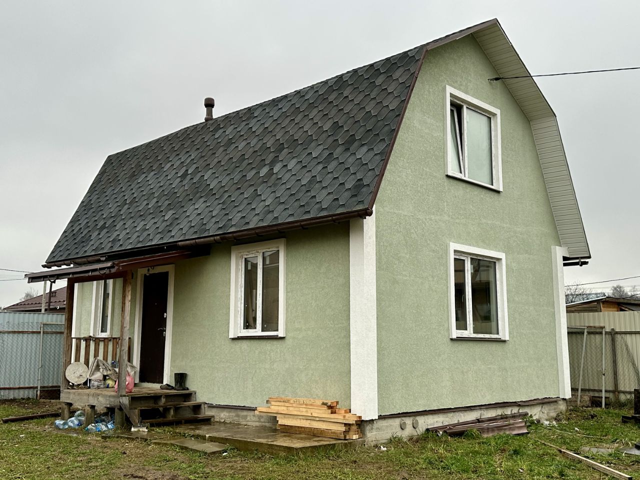 Дом размером 6*8, 2 этажа, ленточный фундамент, стены каркасные (утеплитель 250). 1 этаж: котельная/ с/у / душевая/ парилка / гостинная, 2 этаж : 2 спальни !