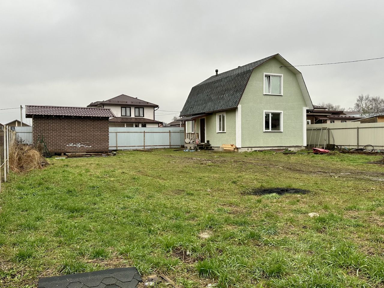 Участок ровный и сухой, огорожен по периметру, на участке имеется сарай.