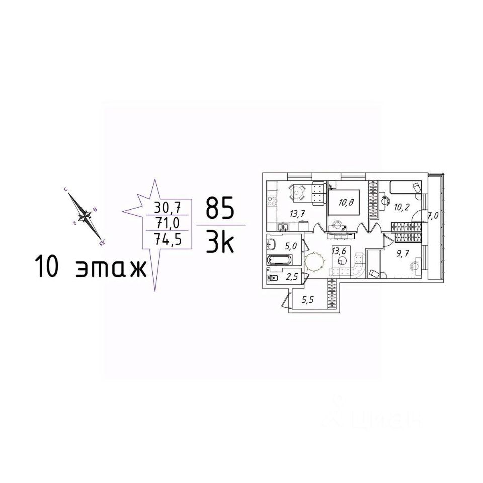 Кухня13,7 м2