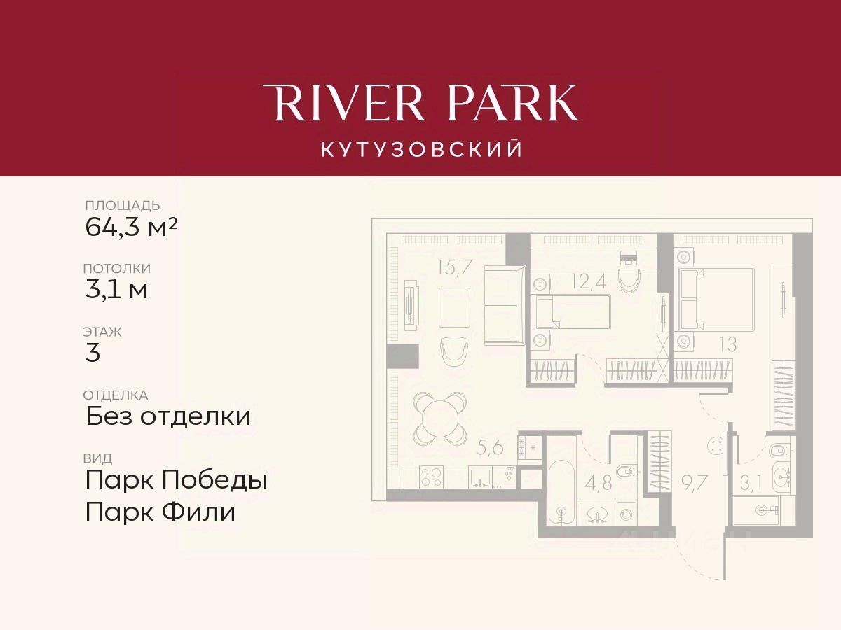 Расположение и Транспортная доступность: - На берегу Москвы-реки, напротив Москва-Сити - 600 метров до Кутузовского проспекта - Удобный съезд с ТТК - Прямой выезд на МКАД по Северному дублеру Кутузовского проспекта. - В пешей доступности 3 станции метро: Фили, Парк Победы, Кутузовская, а также станция МЦД Фили. Архитектура от именитого бюро ADM отличается уникальной пластикой фасадов - башни словно парят в воздухе, играя гранями как драгоценные камни. Жилой комплекс состоит из 5-ти небоскребов с home park на закрытой территории и внешней торговой галереей с открытым доступом.