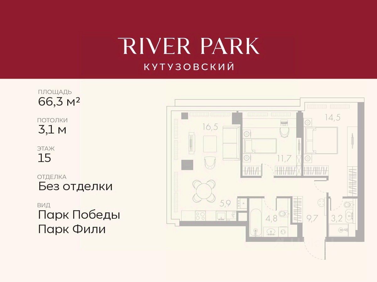66 м² · Этаж 15 из 46