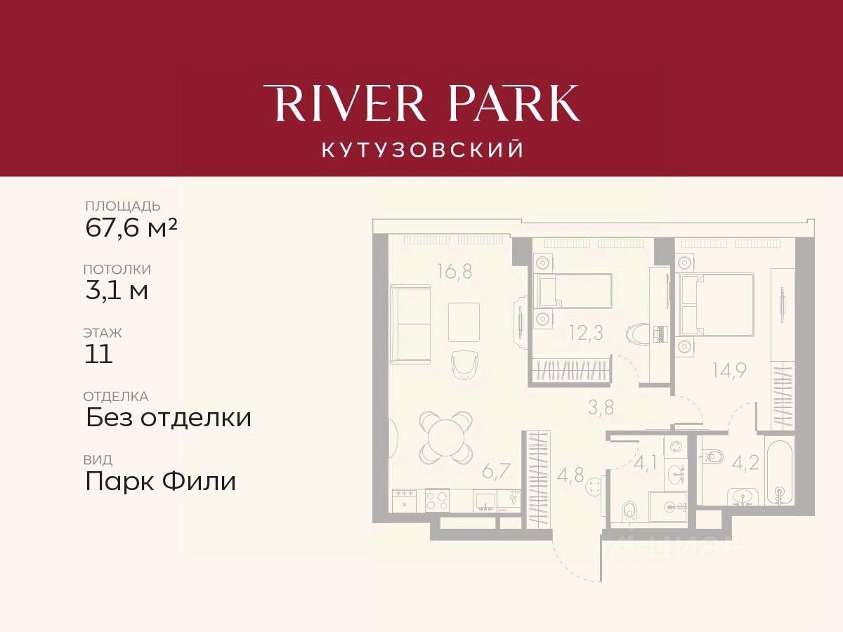 Расположение и Транспортная доступность: - На берегу Москвы-реки, напротив Москва-Сити - 600 метров до Кутузовского проспекта - Удобный съезд с ТТК - Прямой выезд на МКАД по Северному дублеру Кутузовского проспекта. - В пешей доступности 3 станции метро: Фили, Парк Победы, Кутузовская, а также станция МЦД Фили. Архитектура от именитого бюро ADM отличается уникальной пластикой фасадов - башни словно парят в воздухе, играя гранями как драгоценные камни. Жилой комплекс состоит из 5-ти небоскребов с home park на закрытой территории и внешней торговой галереей с открытым доступом.