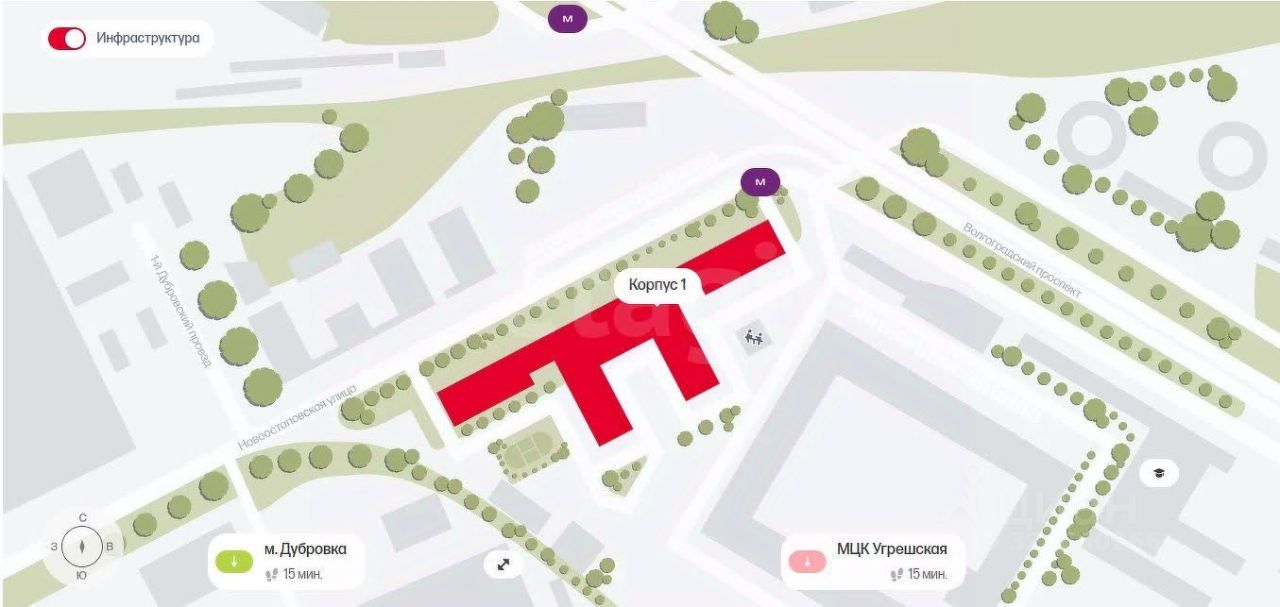 - рядом вся инфраструктура: школы, детские сады, поликлиника, банки, магазины, в 2-х минутах м. Волгорадский проспект.