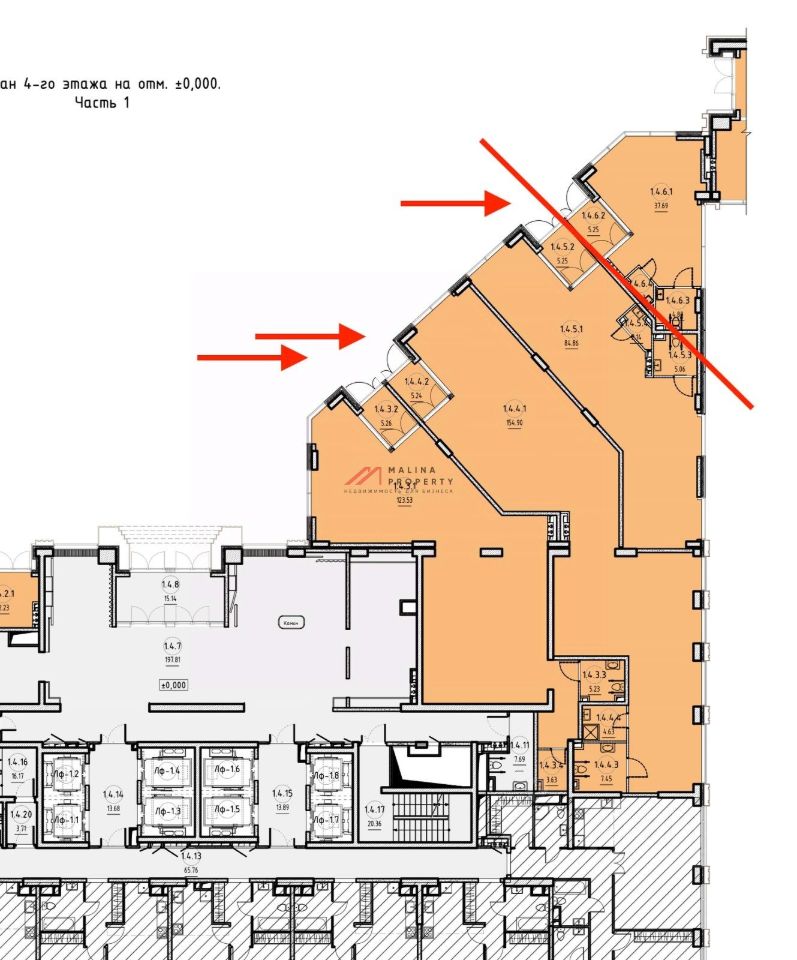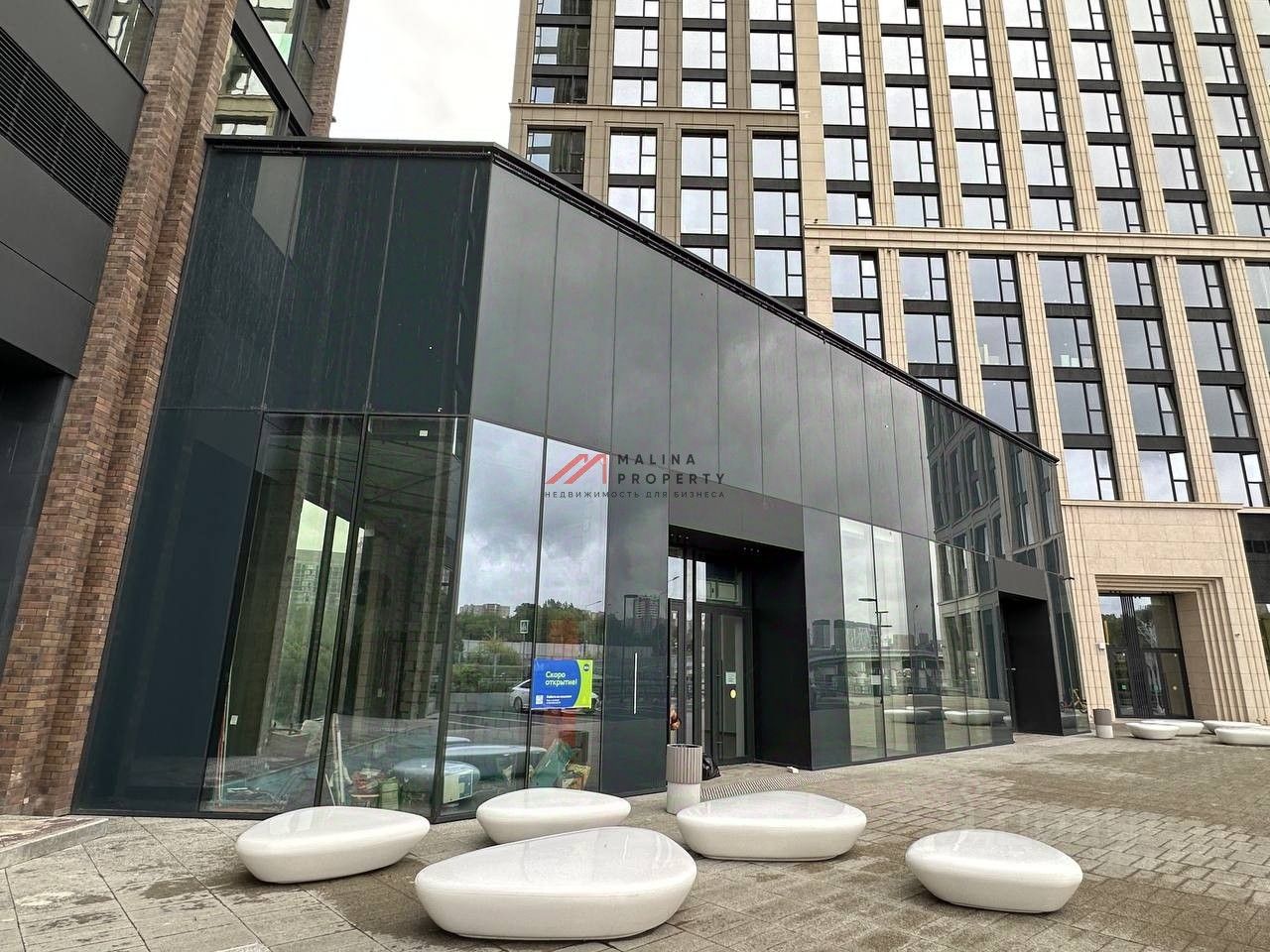 Помещение 408 м2, располагается в стилобате (пристройка) на 1 этаже, открытая планировка, отдельные входы с фасада, витринные окна по фасаду, высокие потолки, парковка.