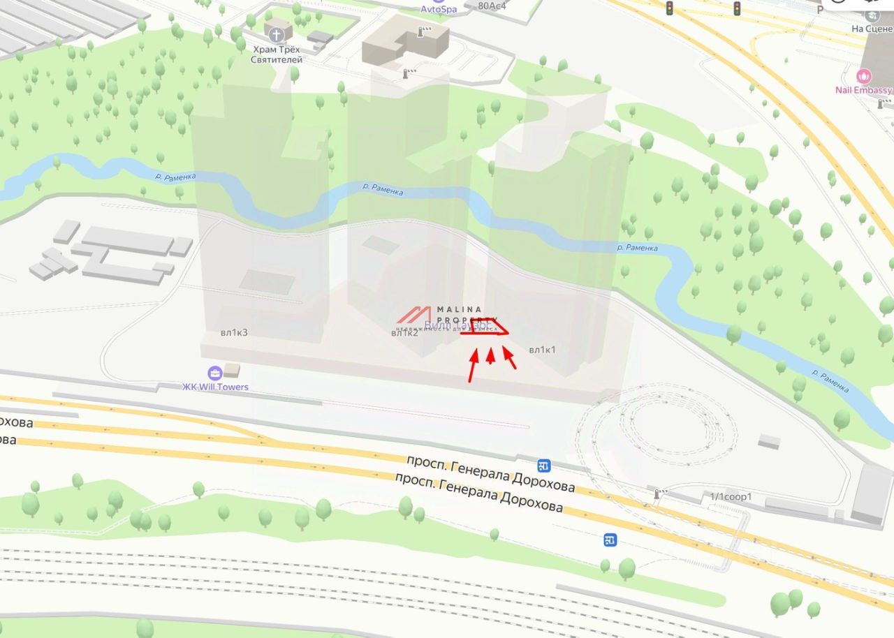 Продажа торгового помещения 408 м2 на 1-й линии в ЖК ''Will Towers'' на проспекте Генерала Дорохова, д. 1 корпус 1 (5 минут пешком от метро Минская).