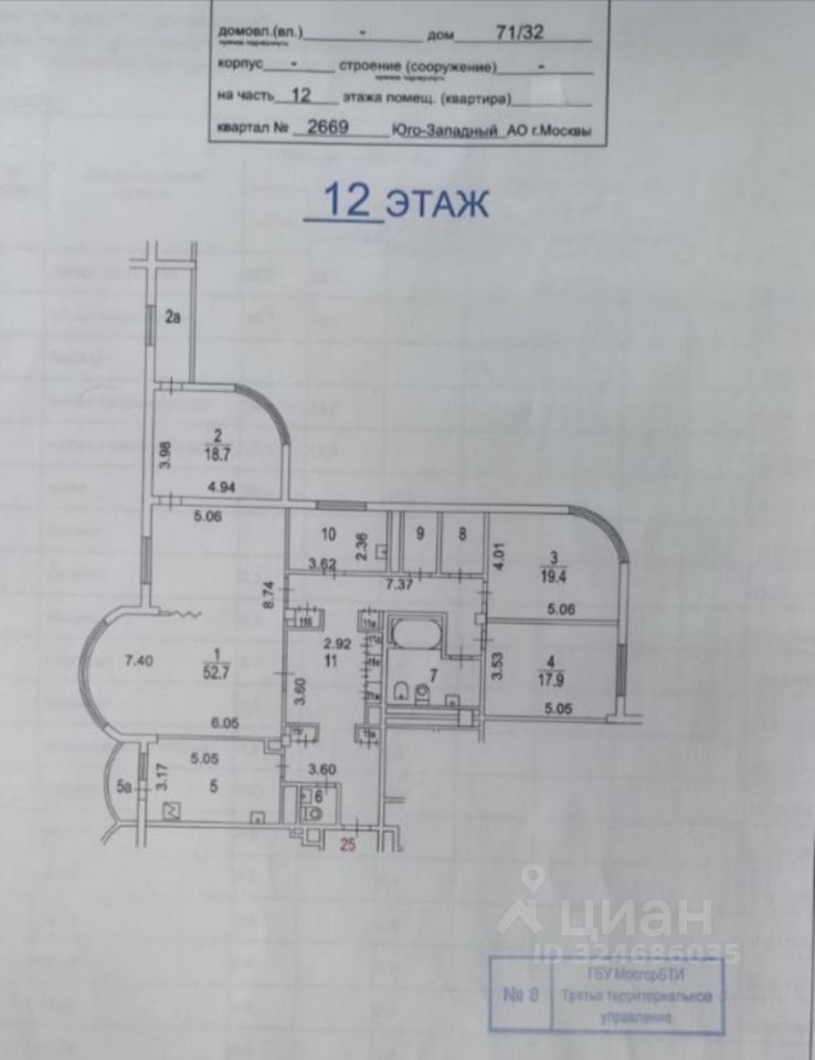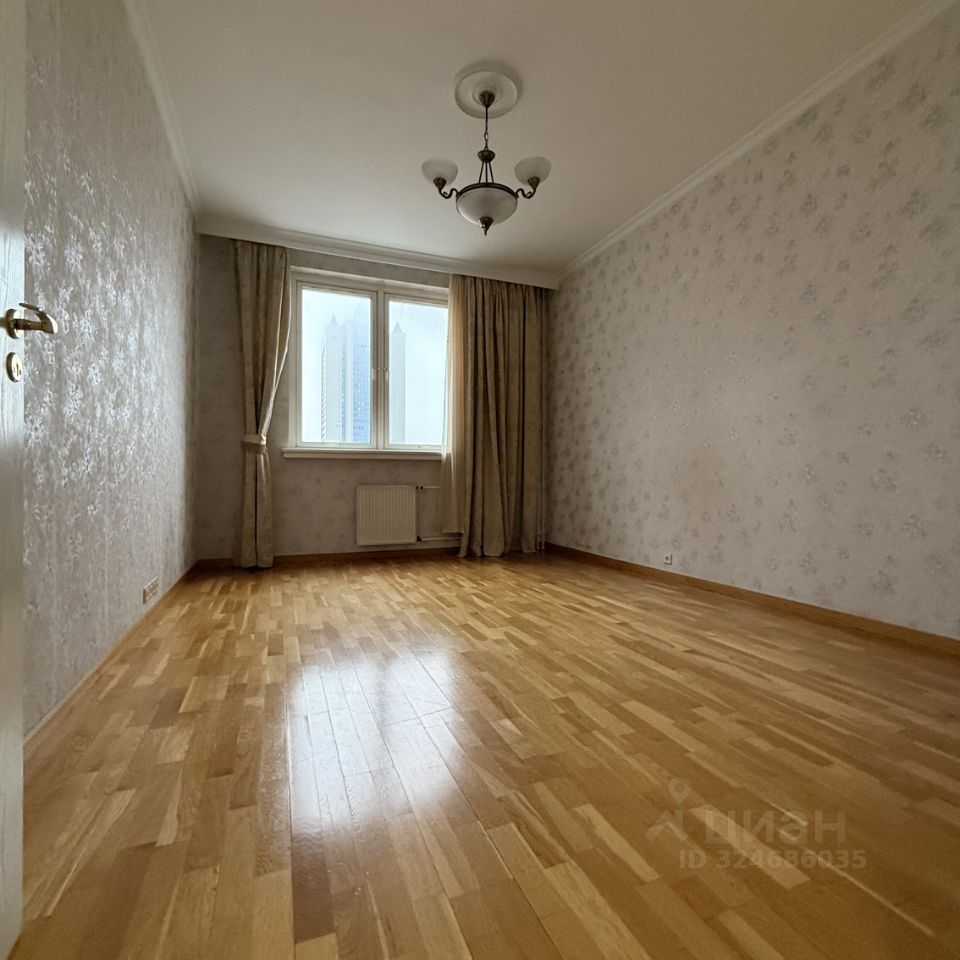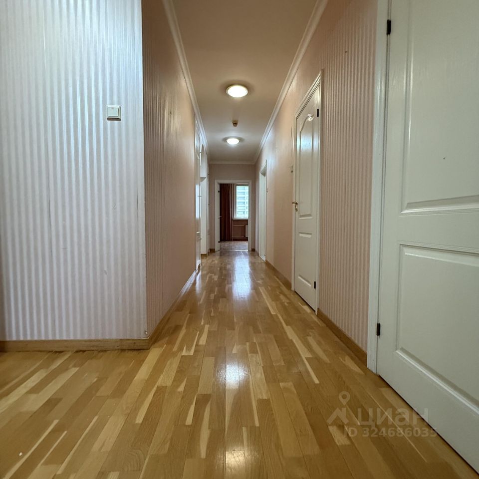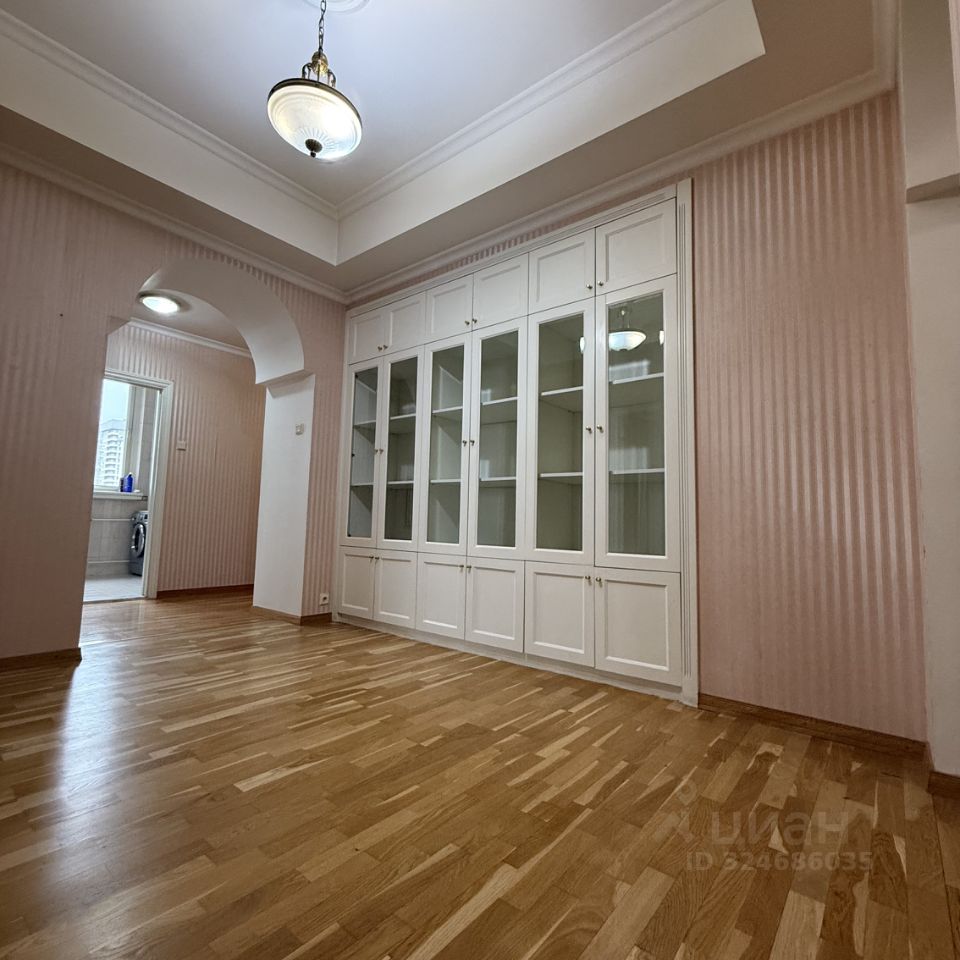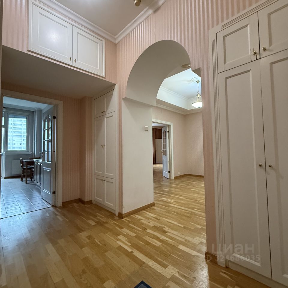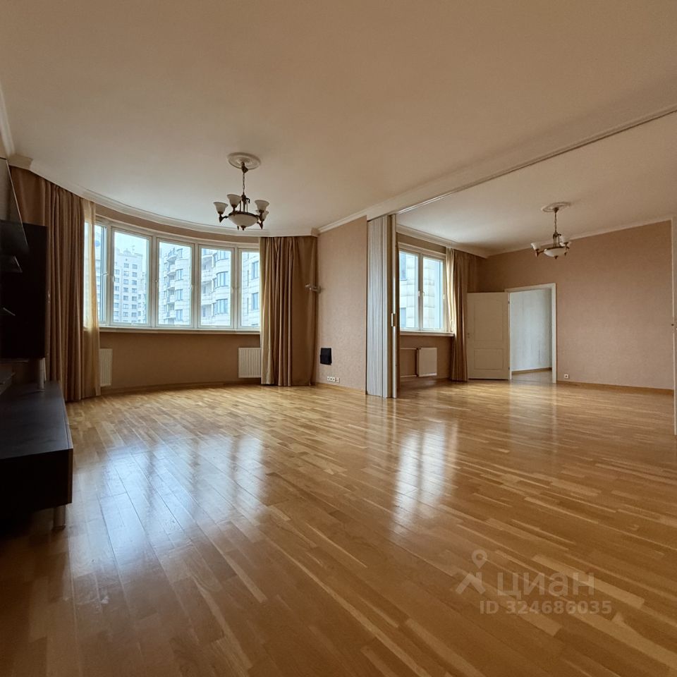 **Планировка:** — Гостиная 54 м² с выходом на застеклённую с двух сторон лоджию, которая идеальна для зимнего сада. — Кухня 16 м² (отдельная) — Кабинет 19 м² — Две спальни по 18 и 20 м² — Всего 3 санузла (ванна, душ, гостевой) — Высота потолков — 3,2 м — Гардеробные: 2 отдельные + 6 встроенных шкафов — Ориентация: кухня и зал — восток, кабинет — юг, спальни — юго-запад и из-за высокого этаж обзор отличный.