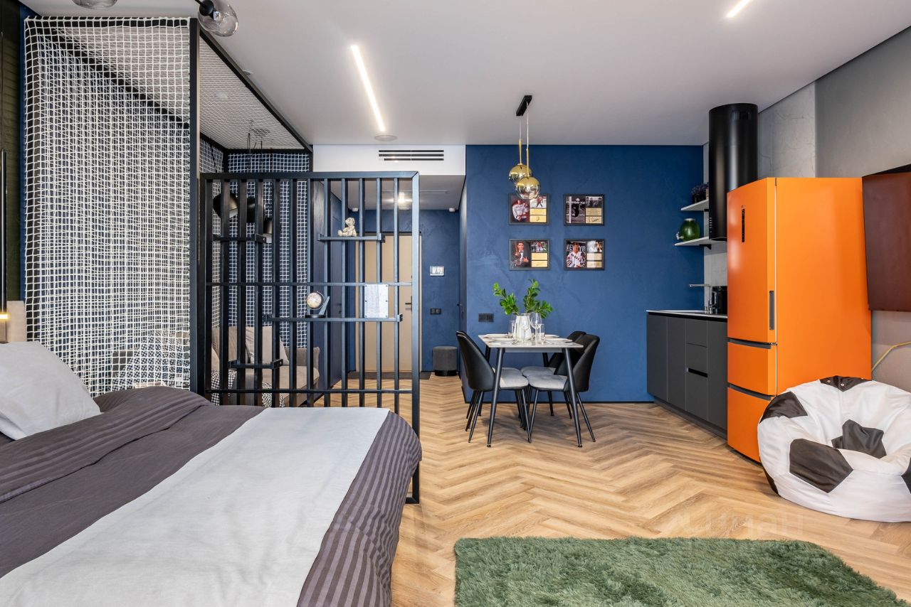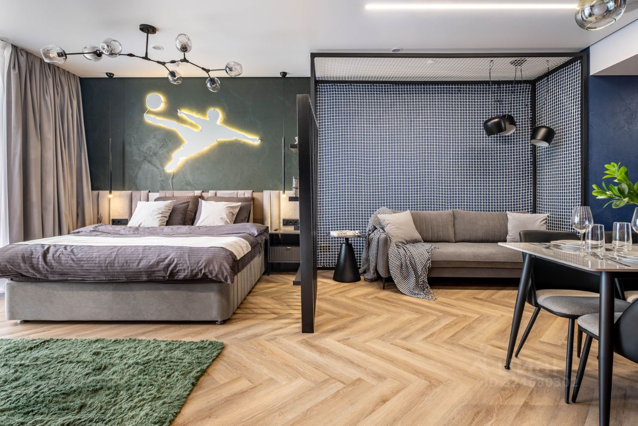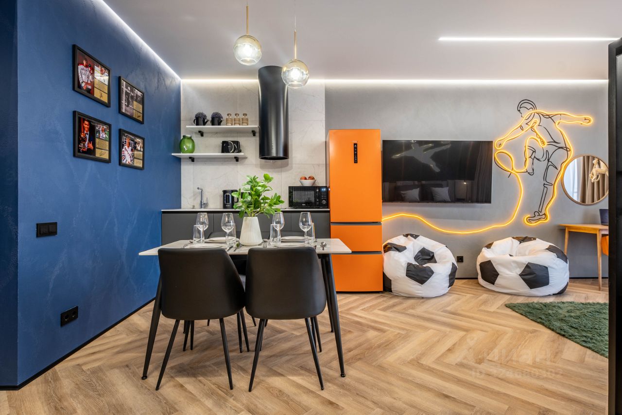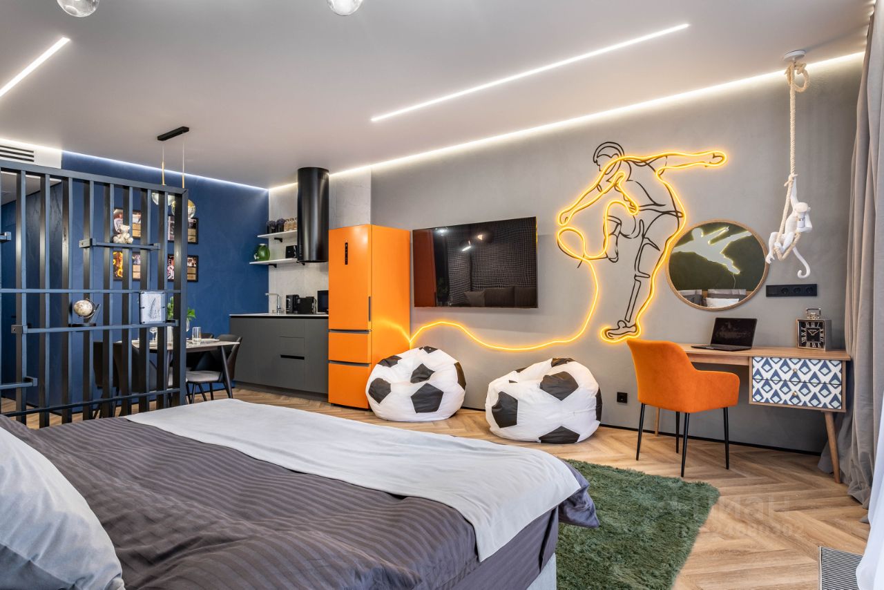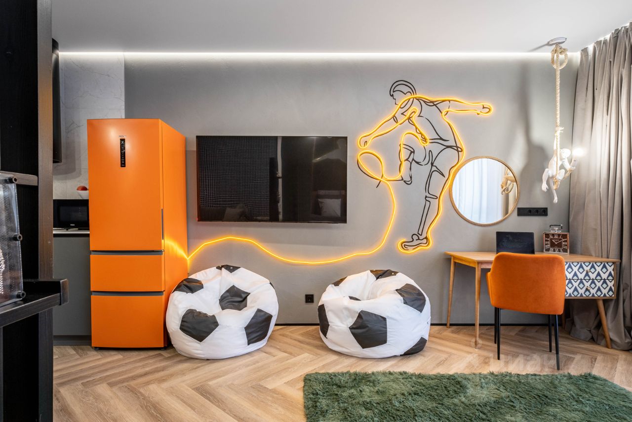 • Общая информация: Просторный апартамент с новой мебелью и уникальными предметами декора на футбольную тематику.