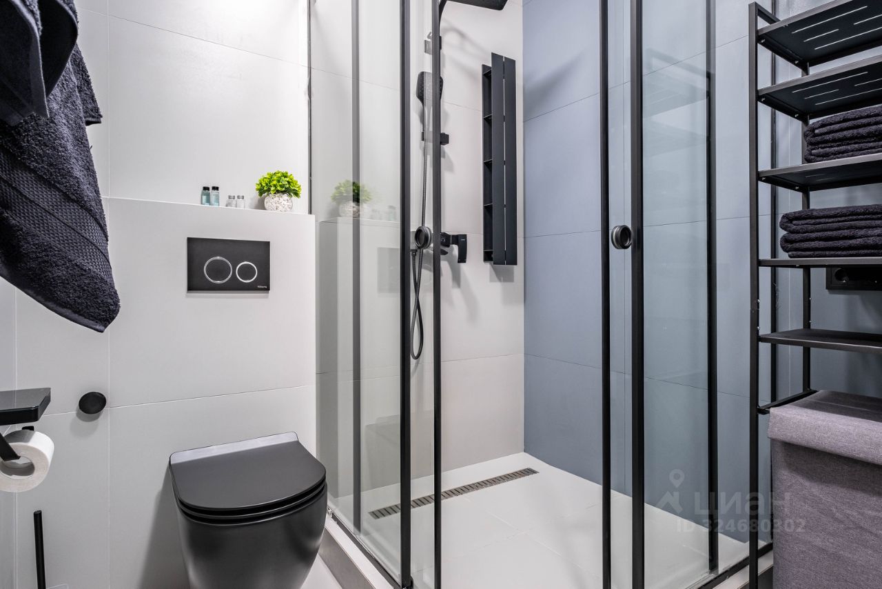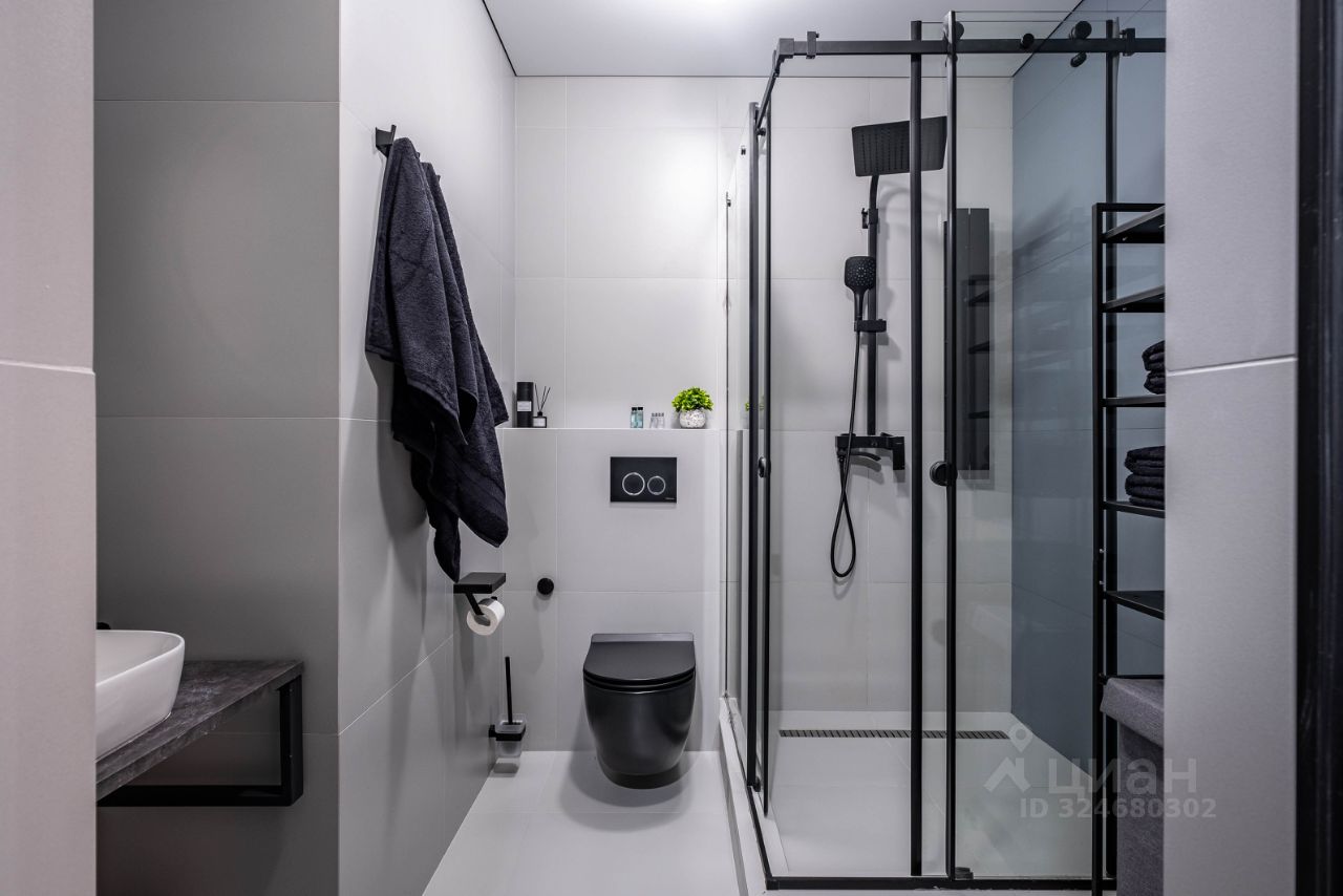 • Санузел: Современный санузел с душевой системой, раковиной и гигиеническим душем.