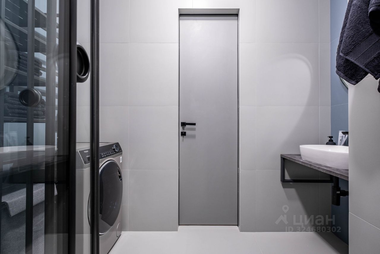 • Гардеробная: Эргономичная гардеробная комната с достаточным количеством мест для хранения. В санузле установлена стиральная машинка с функцией сушки.
