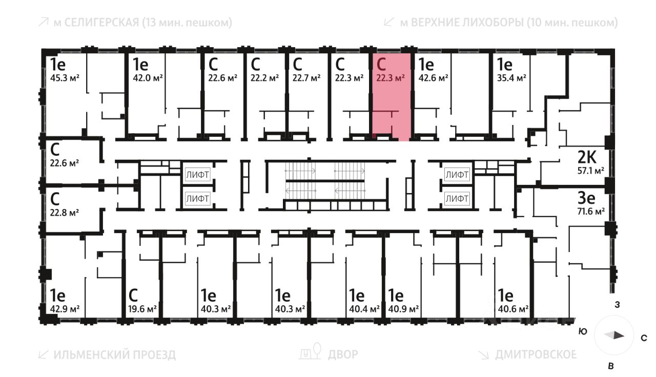 Продается квартира-студия общей площадью 22.3 кв. метров на 7 этаже жилого комплекса Дмитровское небо. Комплекс возводится в Северном административном округе в районе Западное Дегунино в Ильменском проезде, в 5 минутах ходьбы от метро ''Верхние Лихоборы'', а автомобилисты могут за пару минут выехать на Ильменский проезд и по нему добраться до Дмитровского шоссе.
